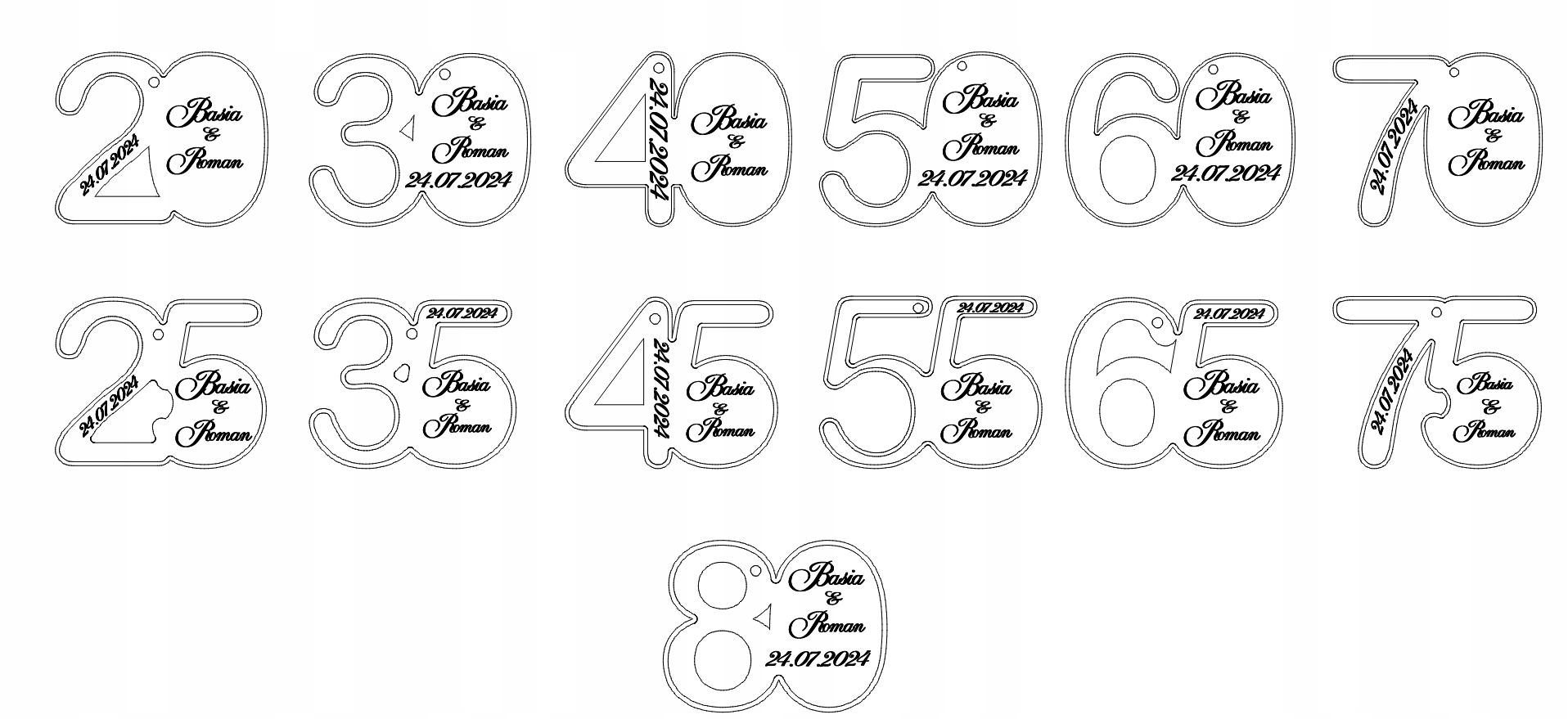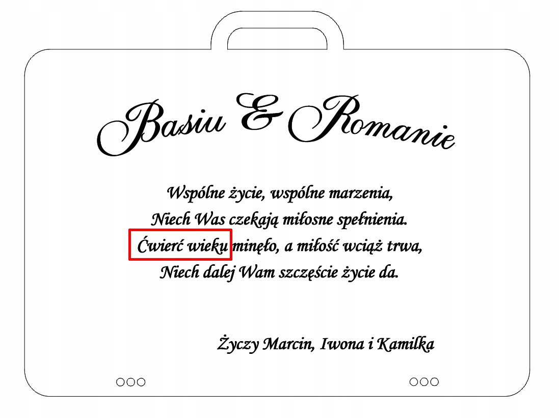 - Измененные имена Юбилеев внутри конверта; Пример: Basiu & Romanie.