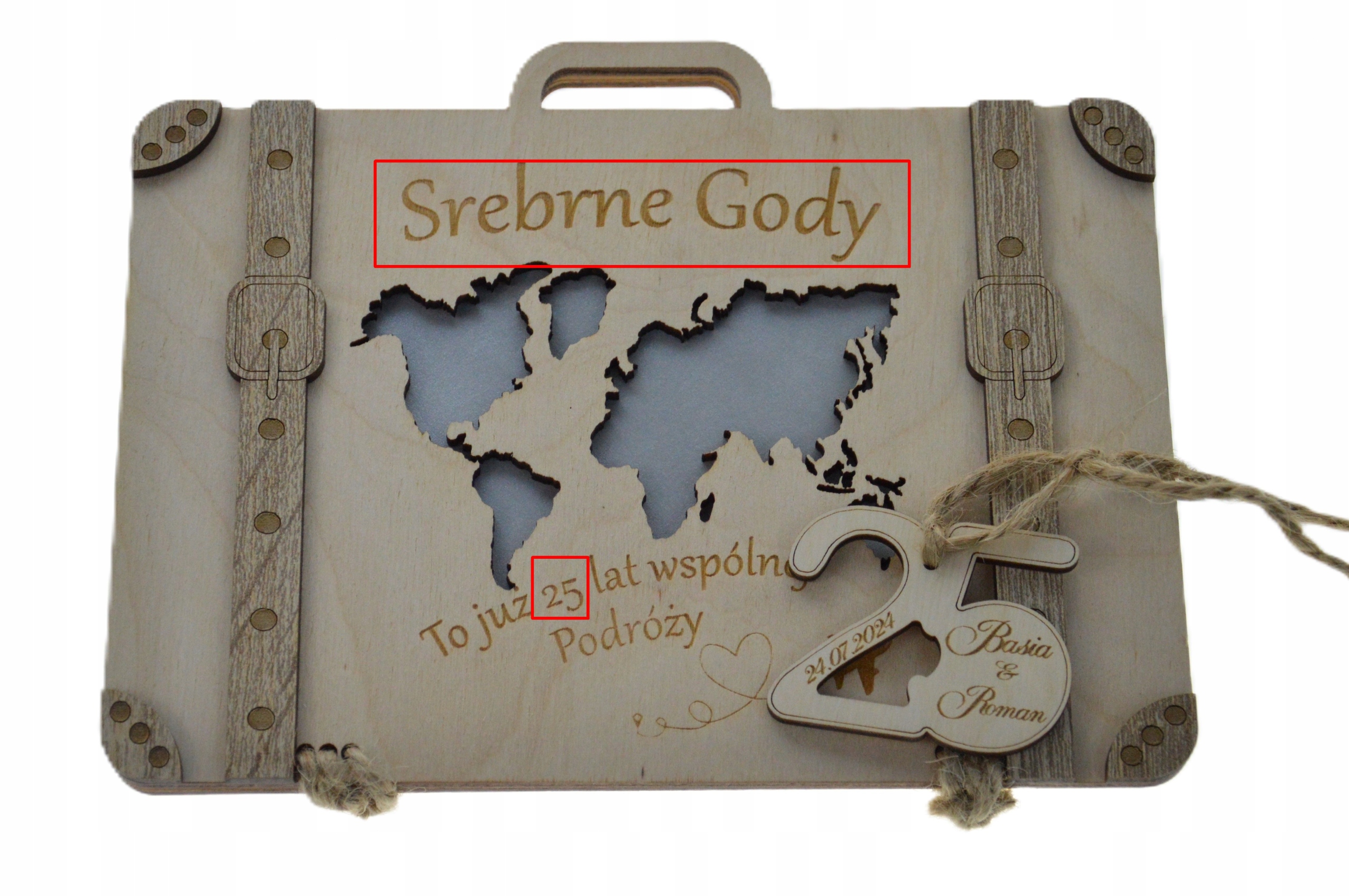 На передней части чемоданов гравируем годовщину свадьбы и годы, проведенные вместе: