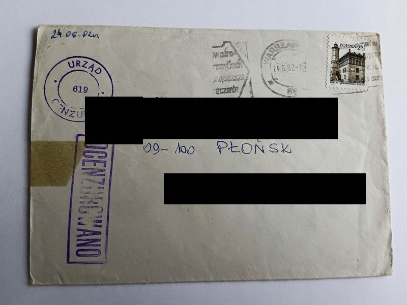 КОНВЕРТ PRL ЦЕНЗУРА ВІЙСЬКОВОГО СТАНУ 1982 PŁOŃSK WARSAW 21786 X
