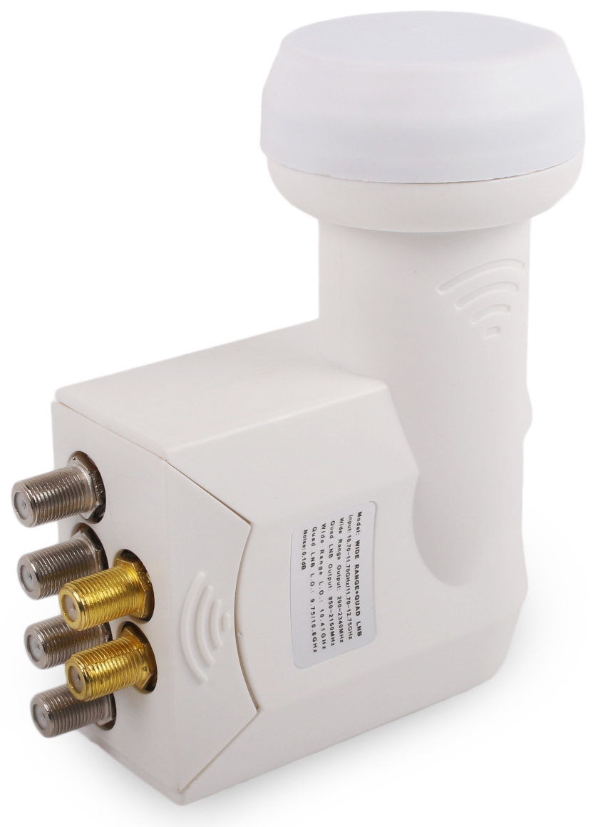 преобразователь широкополосный LNC Legacy 4 Получает любой спутниковый сигнал в полосовой Ku, генерируя сигнал для двух поляризации: горизонтальный и вертикальный. в дополнение к двум входам H/V , которые включают это, также имеет дополнительные четыре стандартных устаревших входов , то есть, например, из стандартного Quad Converter .