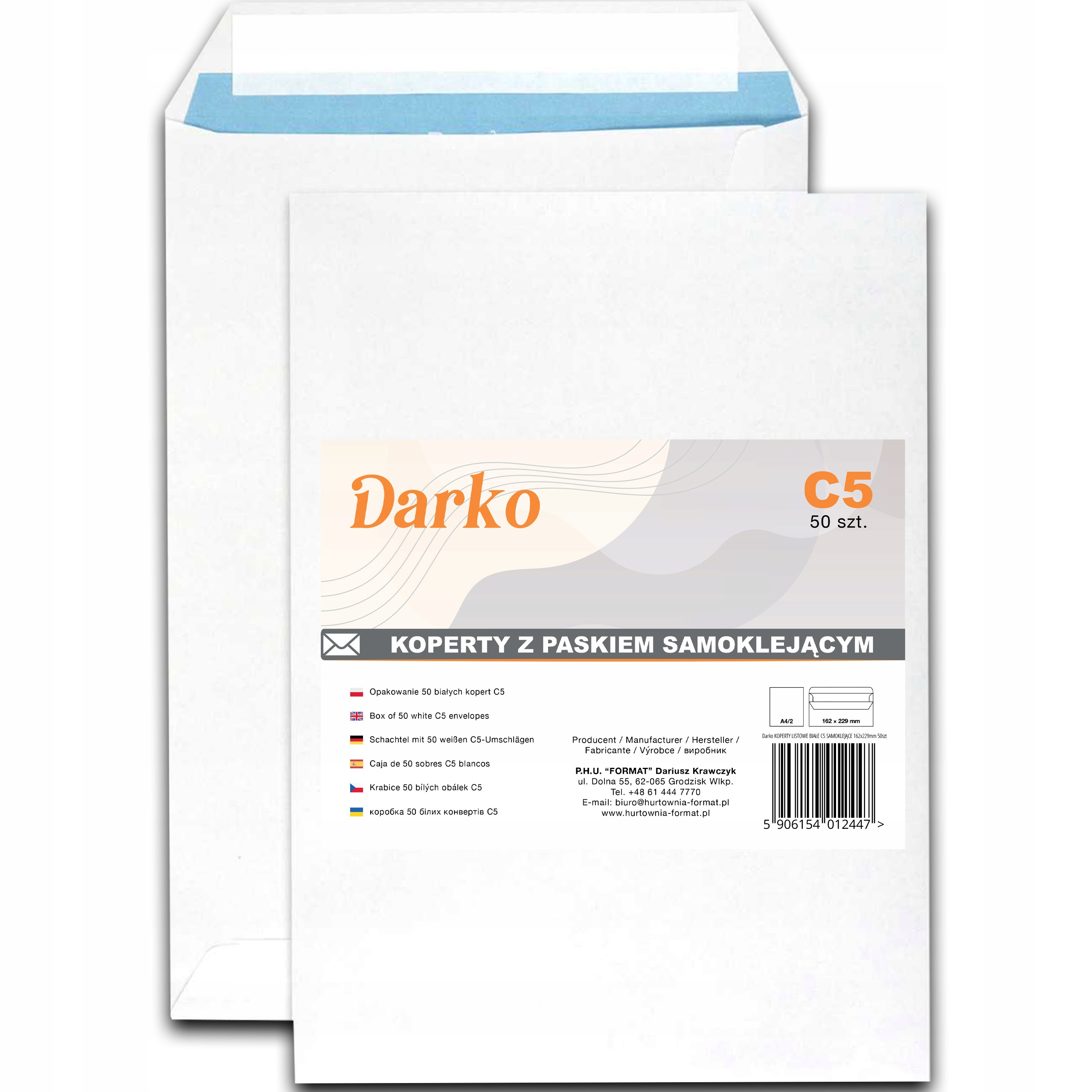 Конверты для писем C5 ОФИСНЫЕ БЕЛЫЕ В УПАКОВКЕ 50 ШТ. DARKO САМОЗАКРЫВАЮЩИЕСЯ 162x229