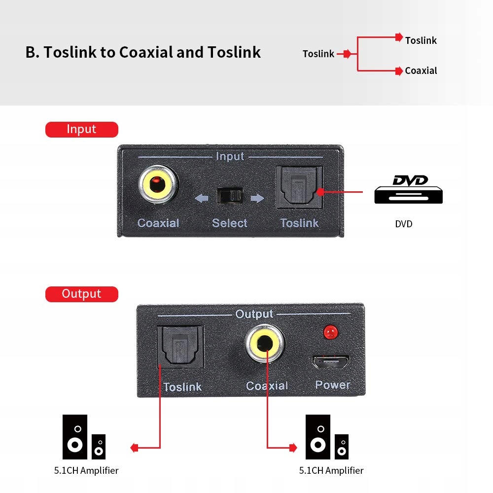 Konwerter Optyczny DWUKIERUNKOWY Toslink Coaxial SPDiF 2x RCA adapter