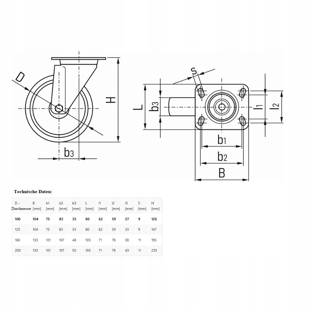 ➡️ Прочный – резина и сталь, из которой изготовлено колесо, исключительно прочны. Дополнительным преимуществом поворотного колеса является простой и быстрый монтаж.