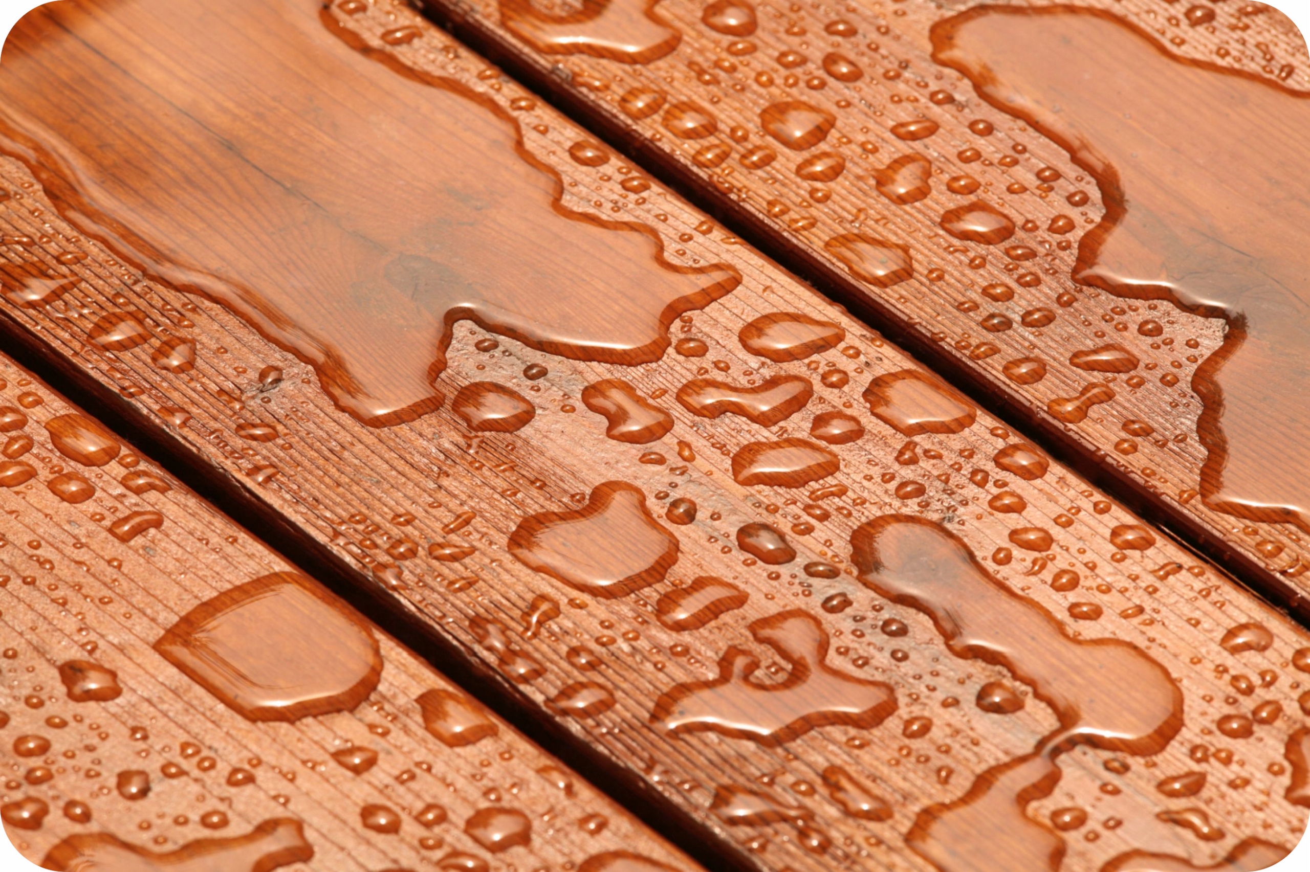 Масло глубоко проникает в структуру древесины, эффективно защищая ее от воды и грязи. После промасливания вы легко заметите, что капли образуют более крупные скопления и остаются на поверхности древесины.