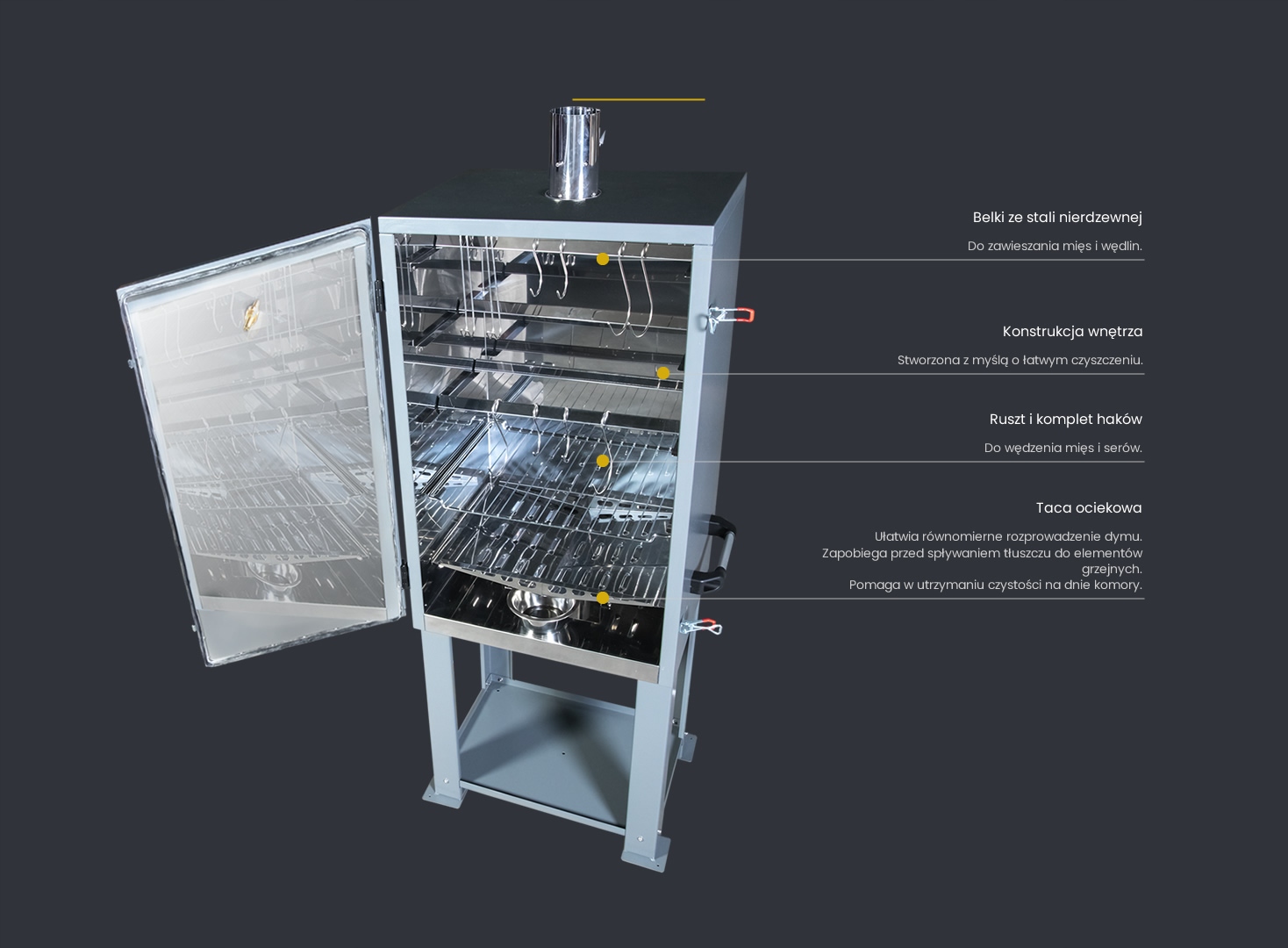 Коптильни марки PIETRZYK с традиционным очагом – проверенные устройства для копчения пищевых продуктов (рыбы, мяса, сыра и других мясных продуктов). Мы создали коптильню, эксплуатация которой предельно проста, поэтому вы сможете насладиться вкусом собственных продуктов. Идеально подходит для начинающих и опытных пользователей.