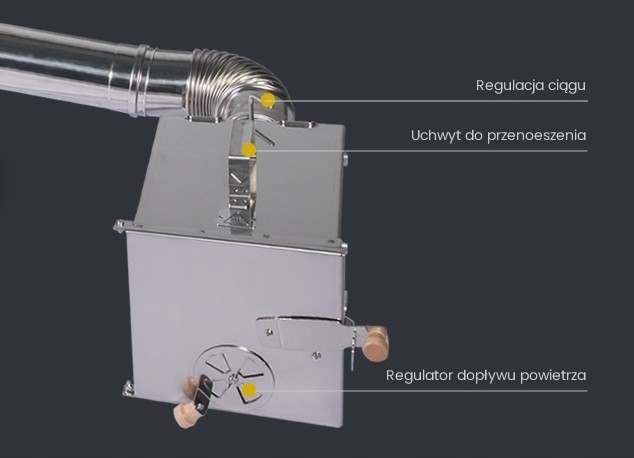 ⦁ Многоступенчатое регулирование тяги и количества выходящего дыма с помощью регулировок на топке и вентиляционном дымоходе.