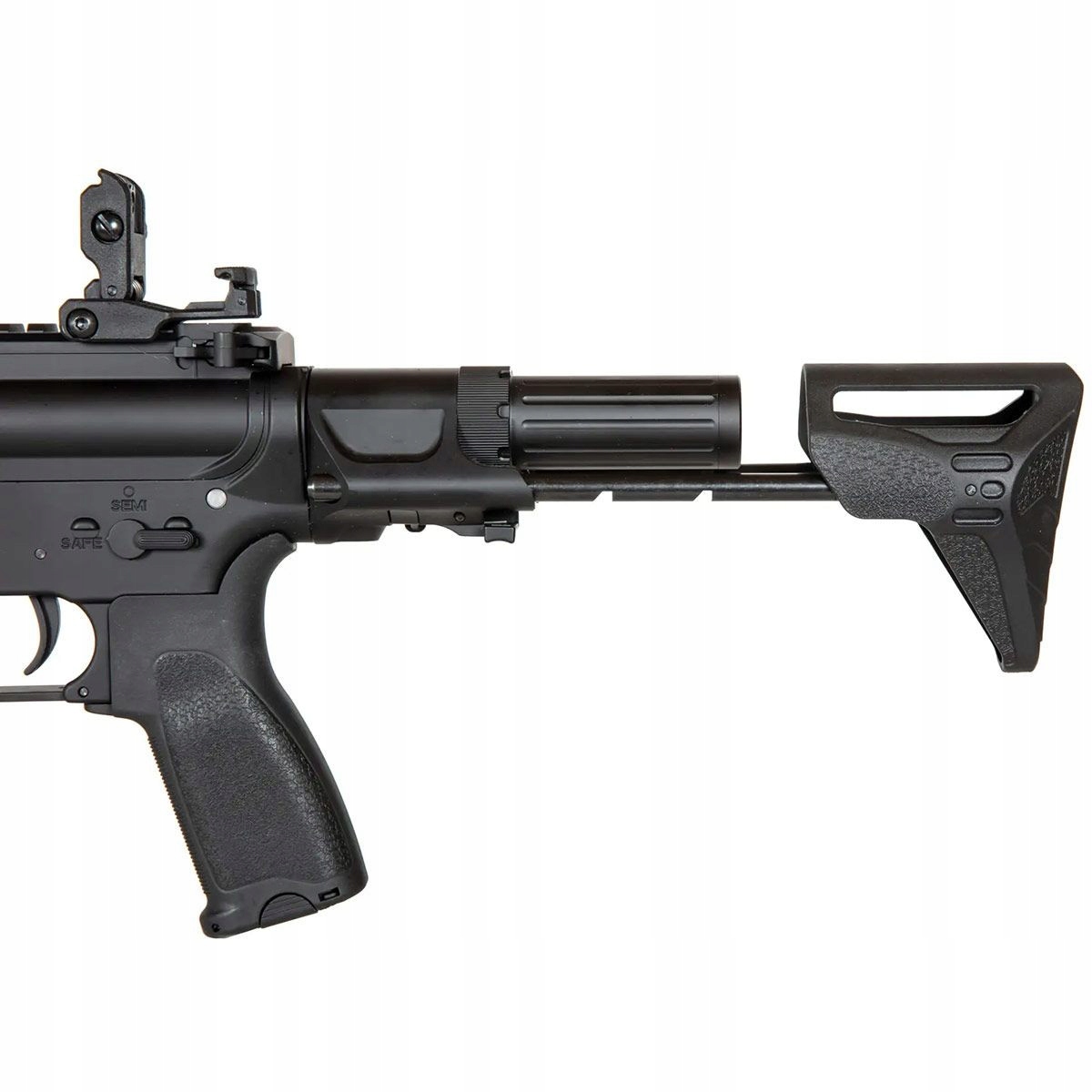 Электрическая копия штурмовой винтовки RRA SA-E17 PDW производства Specna Arms. Корпус, передняя рукоятка типа M-LOK, приклад типа PDW, внешний ствол, направляющая приклада и мелкие элементы выполнены из металла. Все винты, штифты и рукоятка тактического подвеса изготовлены из стали. Магазины, вертикальная рукоятка и пистолетная рукоятка изготовлены из прочного пластика.