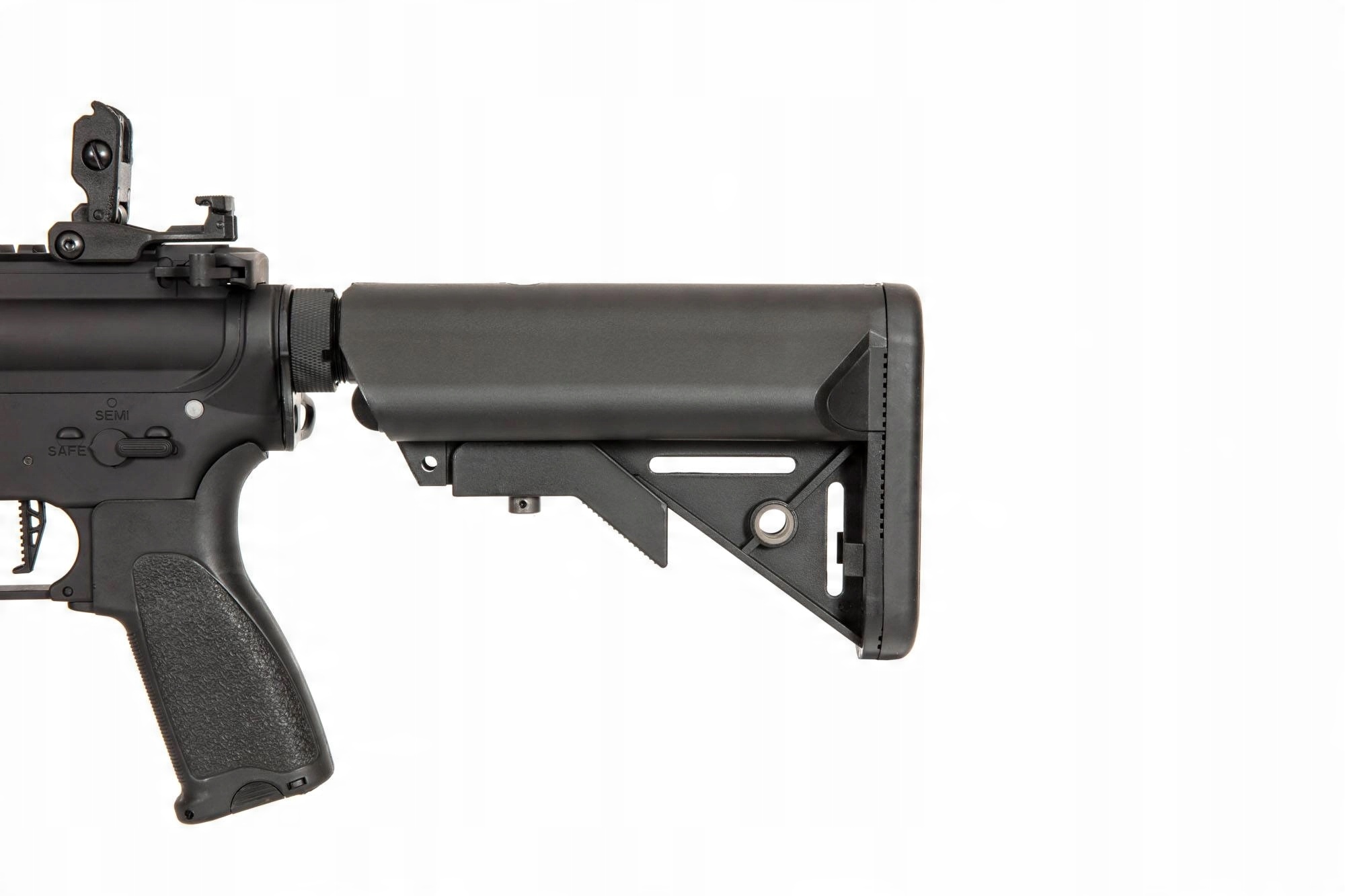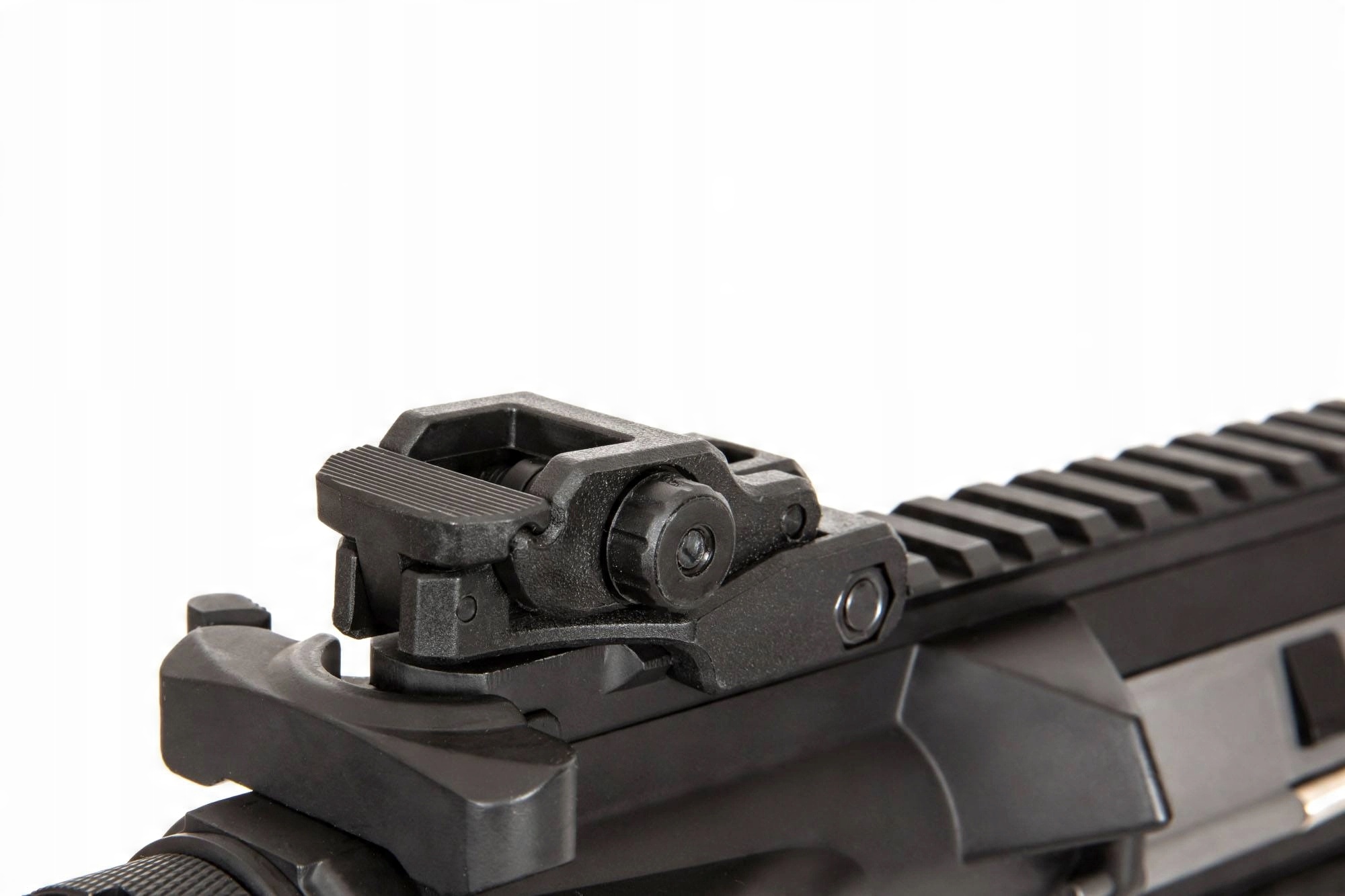 Реплика Винтовка SA-E03 оснащена классической короткой передней частью стандарта RIS 22 мм, позволяющей устанавливать различные аксессуары - рукоятки, фонарики, лазерные указки. или оптические прицелы. Ствол реплики заканчивается дульным устройством, установленным на резьбе 14 мм против часовой стрелки. складные прицельные приспособления размещены на верхней RIS-рейке.