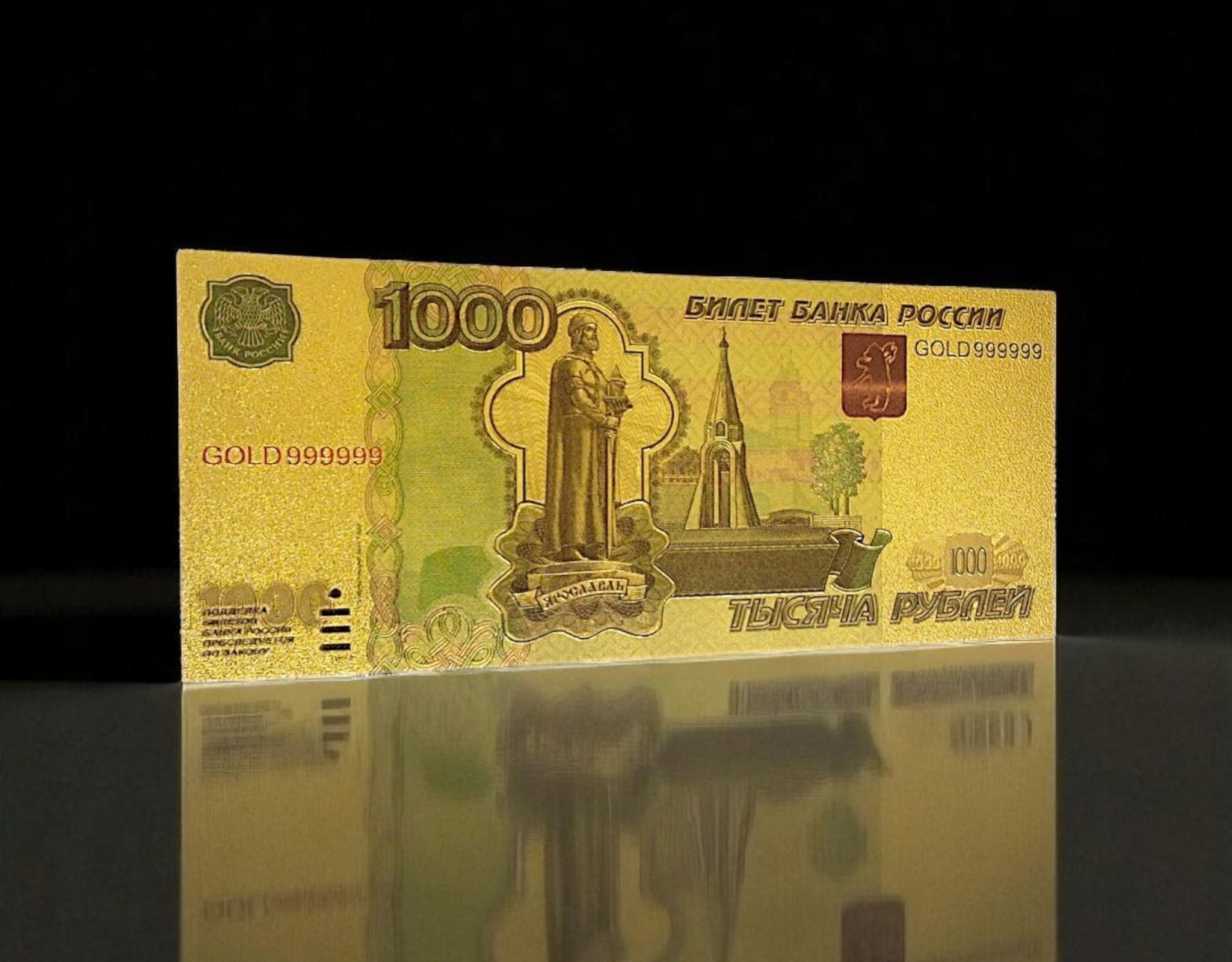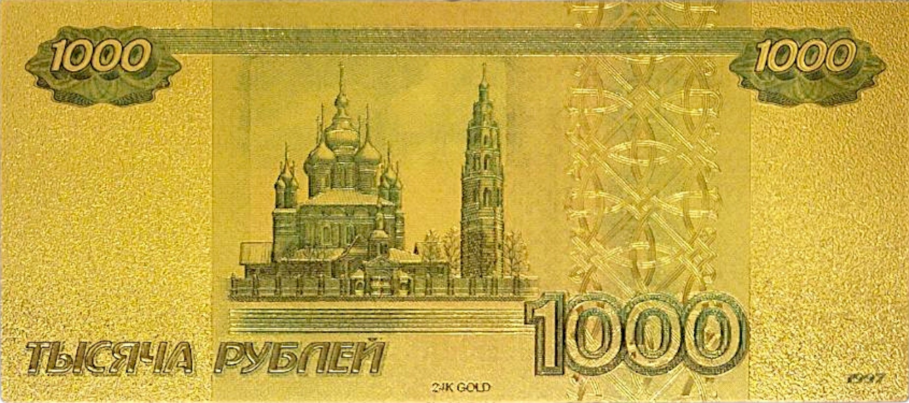 Коллекционная банкнота России из ПВХ 1000 рублей, позолоченная