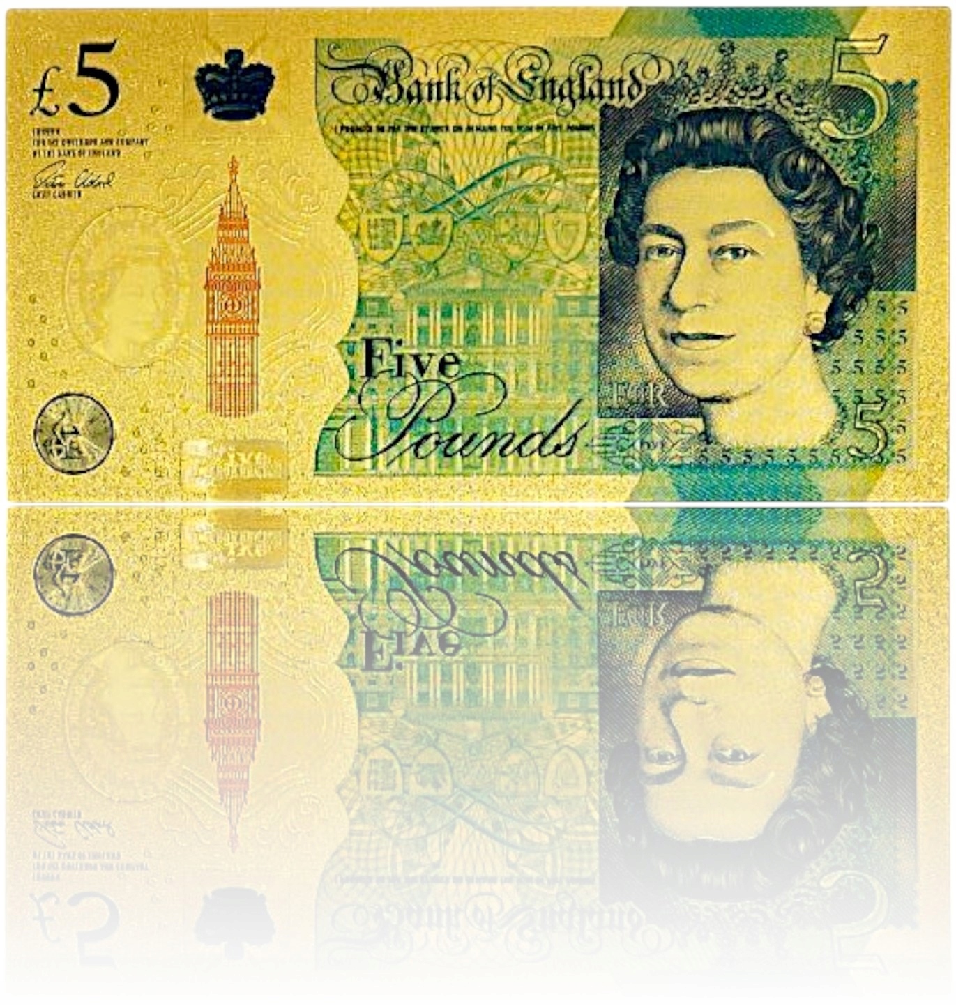 КОПИЯ БАНКНОТЫ 5 БРИТАНСКИХ ФУНТОВ ПОЗОЛОЧЕННАЯ БАНКНОТА ПВХ