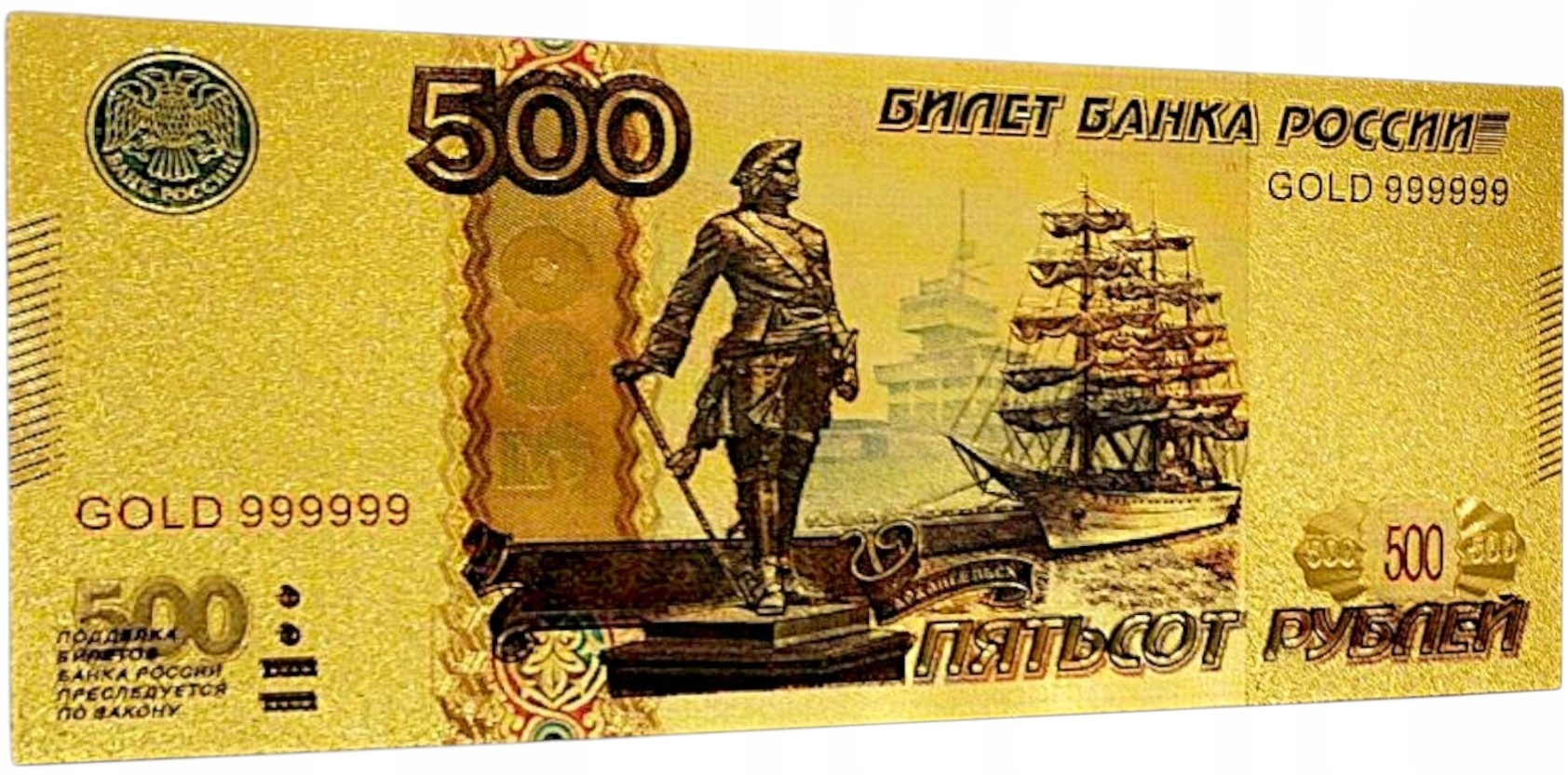 Копия коллекционной банкноты 500 рублей России из ПВХ с позолотой.