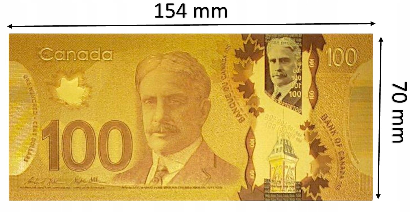 Впечатляющая коллекционная банкнота номиналом 100 канадских долларов, изготовленная из прочного ПВХ и покрытая блестящей золотой фольгой. Это уникальный сувенир, вдохновленный оригинальной банкнотой, который идеально подойдет в качестве украшения, подарка или предмета коллекции!