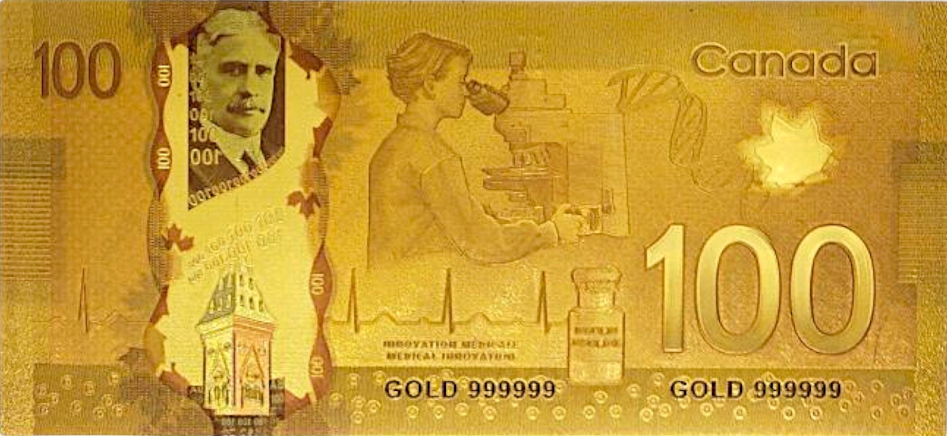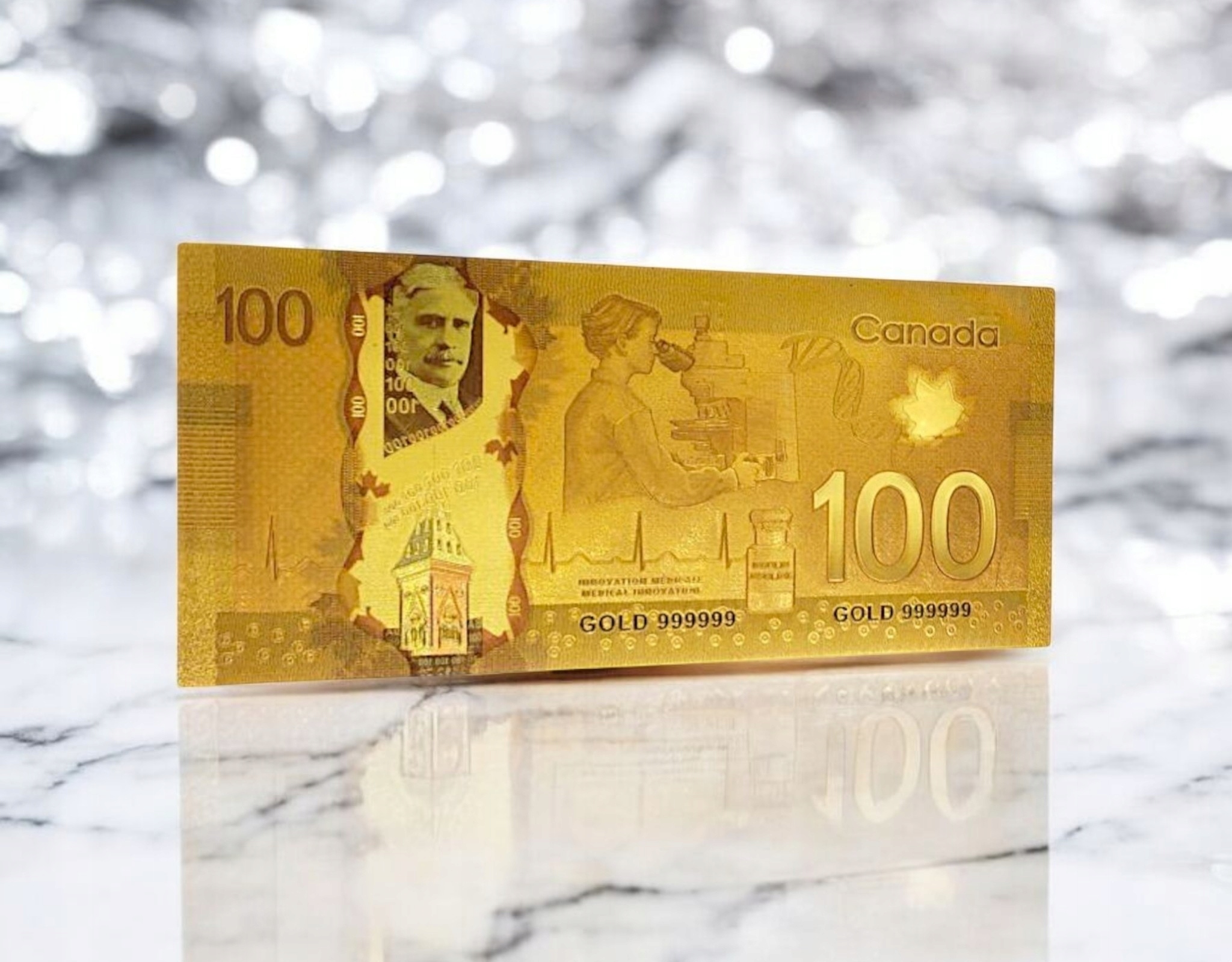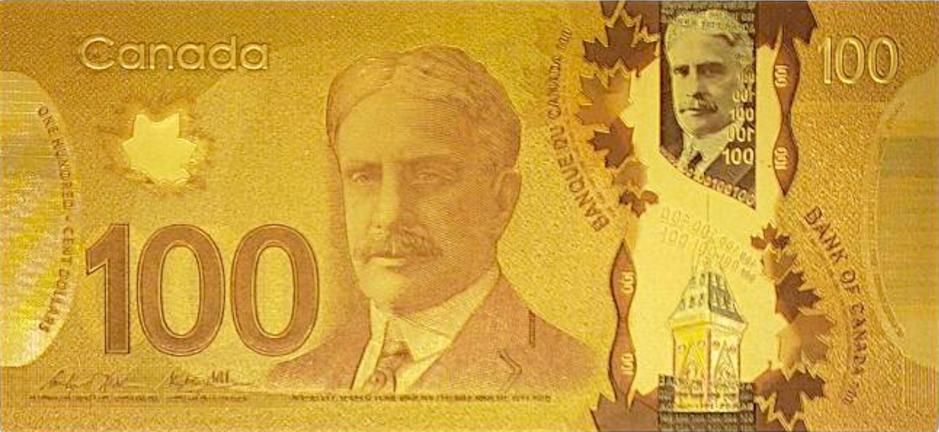 БАНКНОТА КАНАДА 100 ДОЛЛАРОВ ПОЗОЛОЧЕННАЯ БАНКНОТА ИЗ ПВХ
