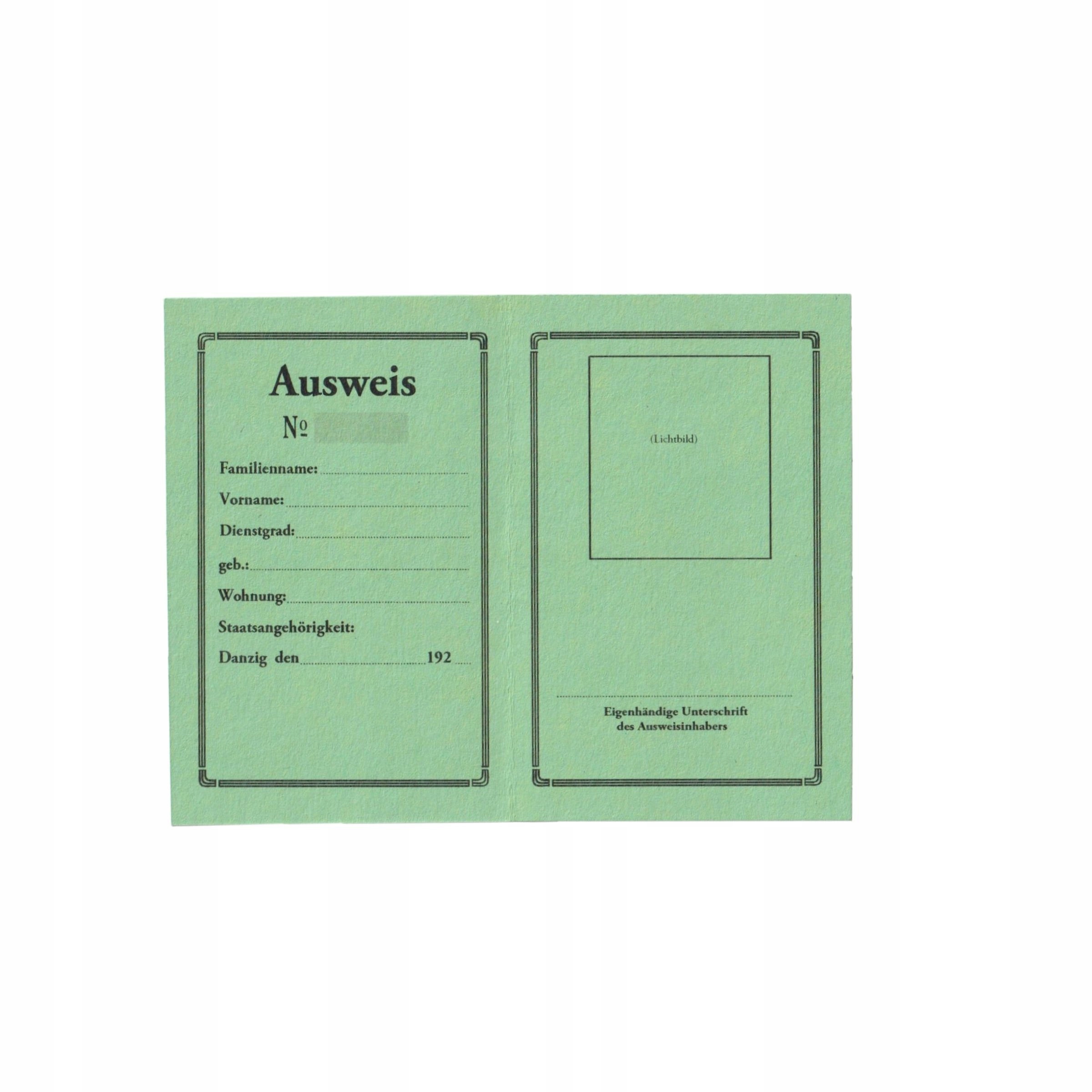 Точная копия удостоверения личности сотрудника полиции безопасности Вольного города Гданьска. W. Ausweis выполнен на плотной бумаге, без заполнения. Очень точно воспроизведены детали.