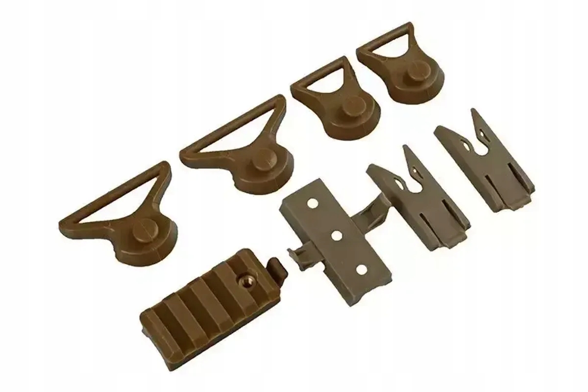 Как и многие другие шлемы на основе конструкции типа FAST, X-Shield также оснащен набором боковых монтажных направляющих, позволяющих установить весь спектр дополнительного оборудования, такого как очки, тактические освещение, гарнитуры и т. д. На лбу шлема имеется металлический узел СВС и оттяжки, позволяющие устанавливать системы ПНВ. В комплект входит богатый набор модульных креплений и клипс ..