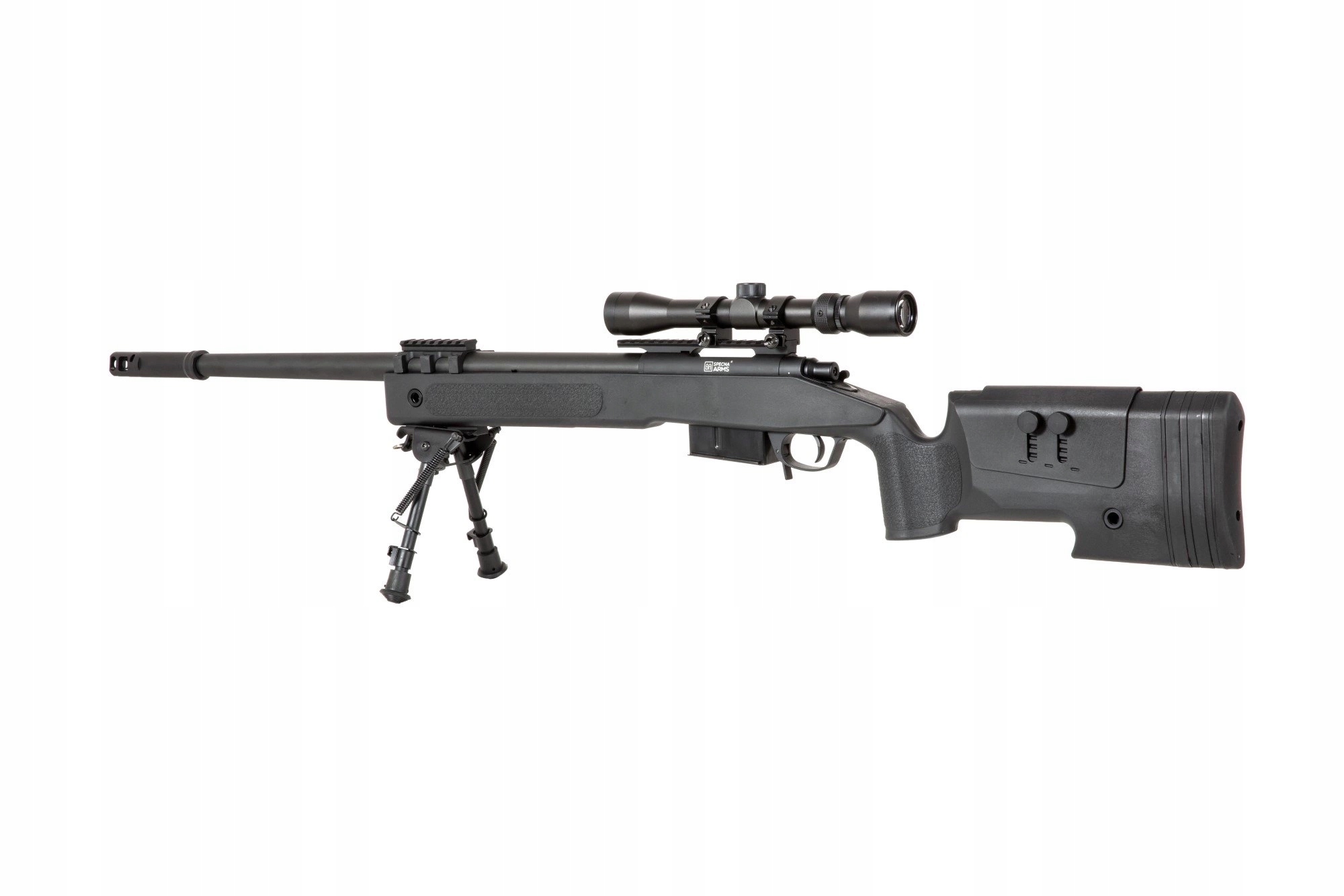 Снайперская копия Specna Arms оснащена простым и надежным четырехтактным механизмом, который необходимо перезаряжать перед каждым выстрелом. Реплика изготовлена из металла и армированного пластика. Весь внешний ствол в сборе выполнен из металла вместе со ствольной коробкой, спусковым крючком и рукояткой заряжания, а также планками RIS/Picatinny и всеми элементами крепления, такими как винты. Реплика также имеет специальную полимерную монтажную планку RIS, которая размещается на цевье над стволом в передней части копии. Эта направляющая позволит установить дополнительные аксессуары, такие как коробки AN/PEQ. Цевье с прикладом, нащечник, затыльник и магазин изготовлены из прочного пластика. Сам затыльник отделан удобной резиновой накладкой, ее толщину можно регулировать благодаря набору сменных накладок. В сочетании с регулируемой подщечкой это позволяет настроить приклад в соответствии с предпочтениями стрелка.