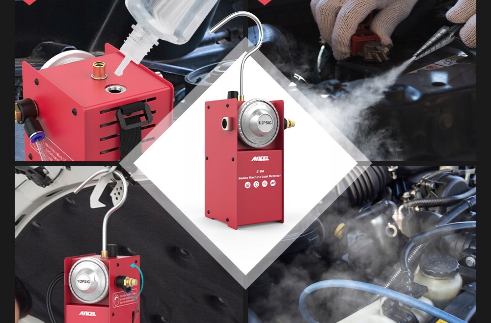 Детектор утечки дыма ANCEL S100 – универсальный и профессиональный тестер дыма из автомобильных труб. Это поможет нам быстро и точно установить утечку мотоцикла в системе трубопроводов, например: Проверить впускную систему; Проверка выхлопной системы; Испытание на герметичность автомобиля; Различные испытания трубопроводной арматуры; Проверка системы топливного бака.