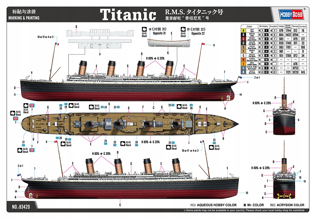 Модель культового британского океанского лайнера R.M.S. Титаник для склейки и покраски от Hobby Boss, каталожный номер 83420.