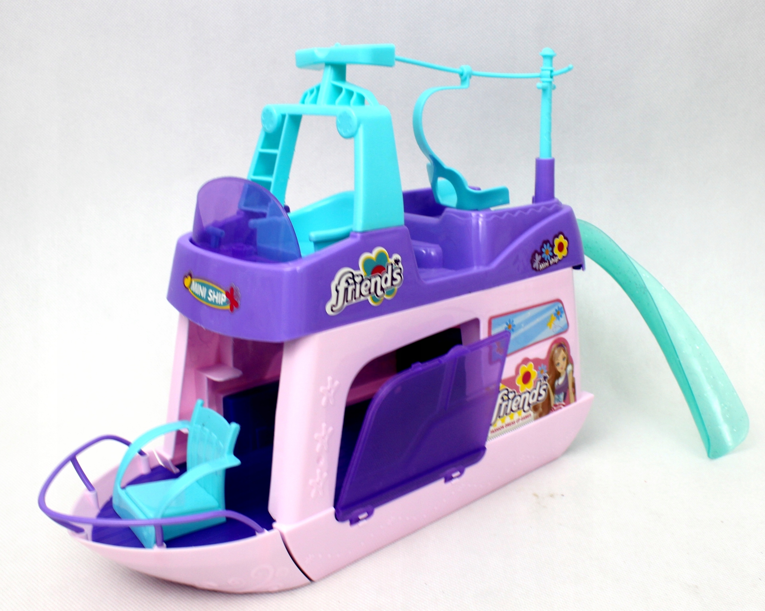 КОРАБЛЬ-ЯХТА ЛОДКА ДЛЯ КУКОЛ с водной горкой + ВЕРТОЛЕТ