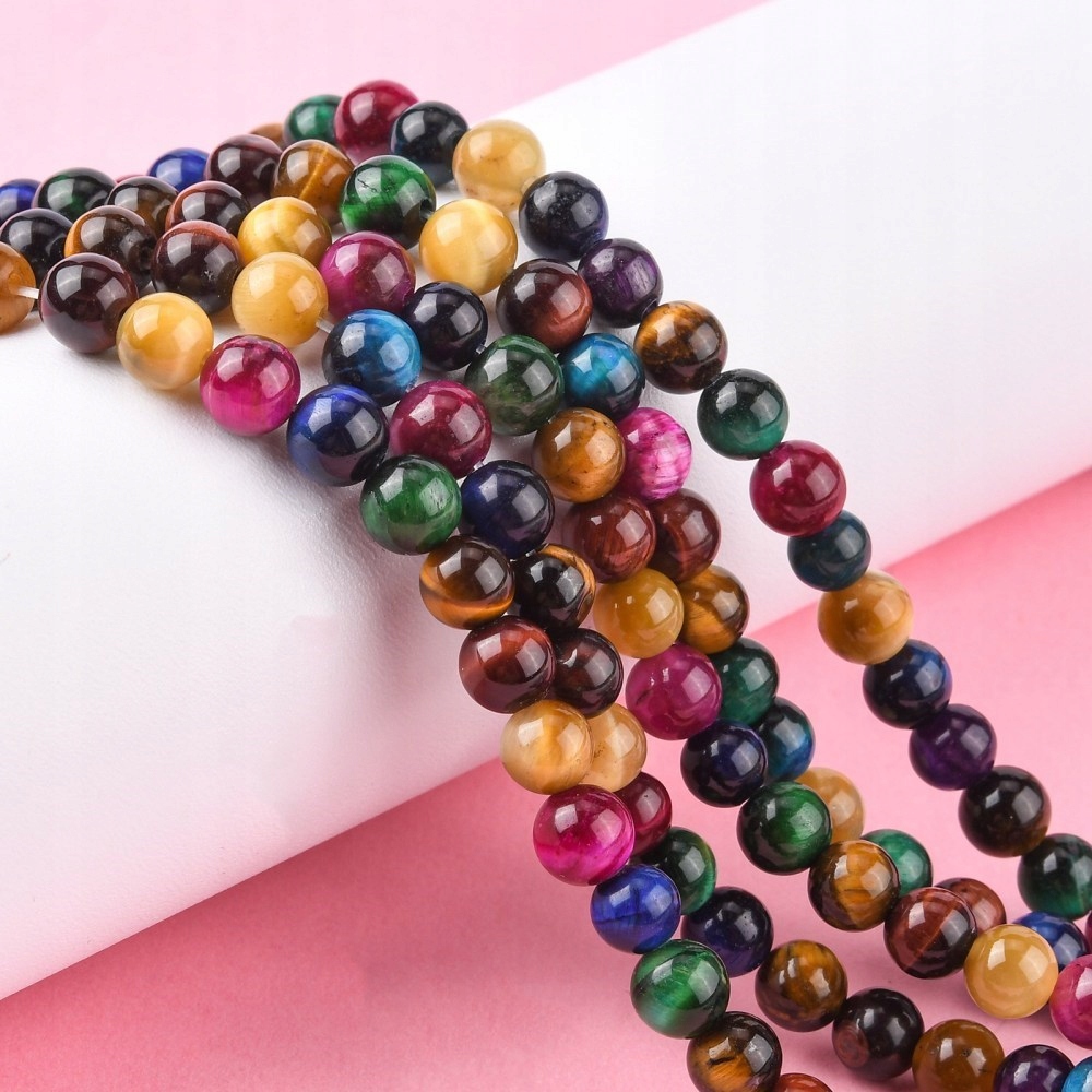 Koraliki Naturalne Tygrysie Oko, Okrągłe, Mix, 6mm, 30szt/16cm/nić