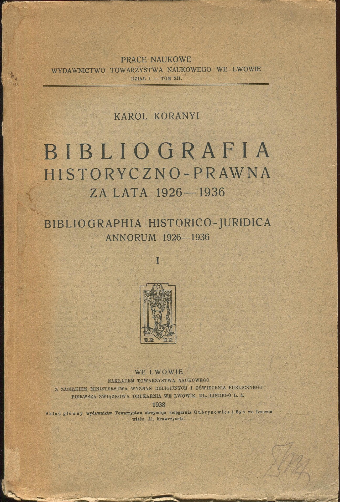 Koranyi BIBLIOGRAFIA HISTORYCZNO-PRAWNA 1926-1936