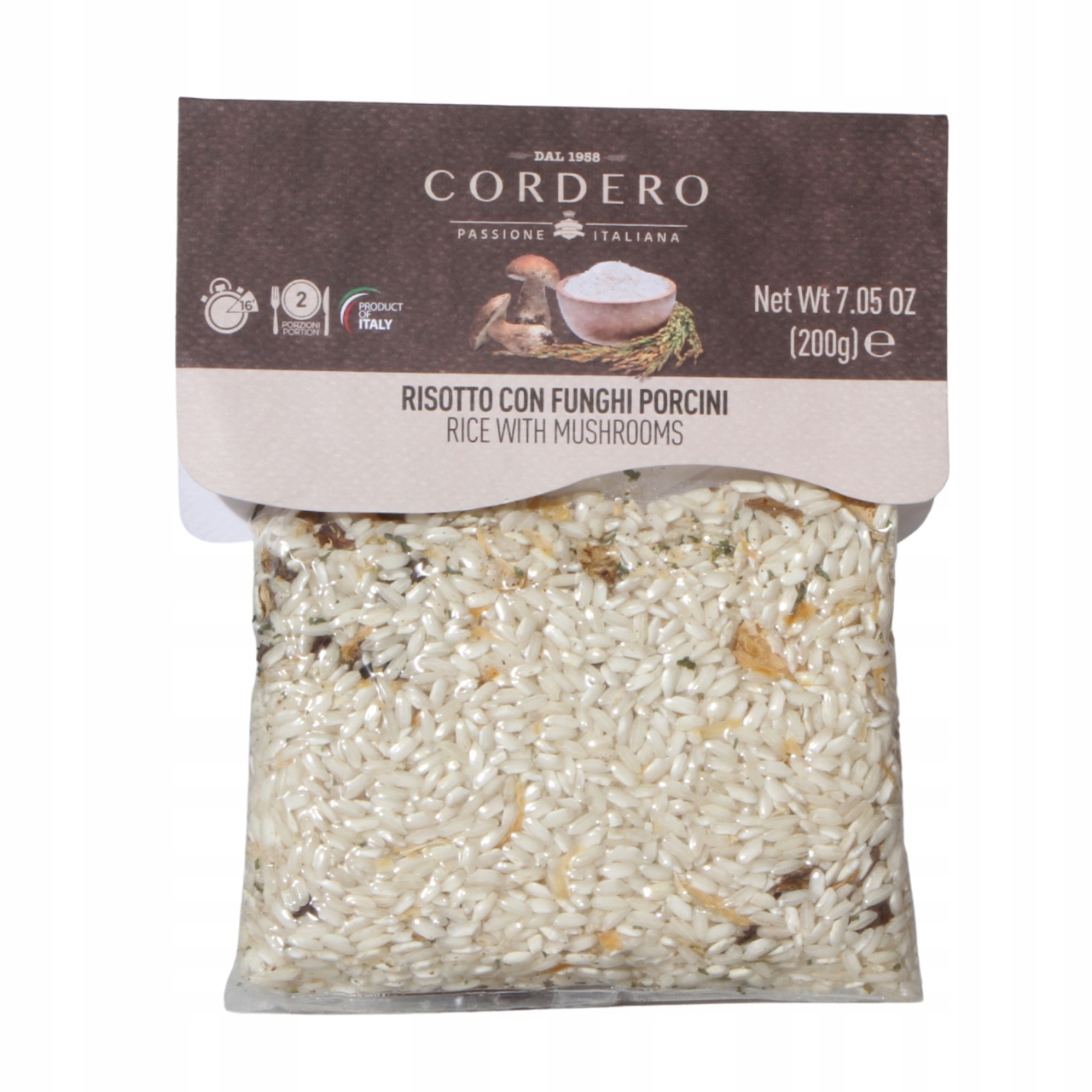 - Ризотто Corddero с Boletus - это тщательно отобранный итальянский рис, обогащенный природными кусками болета, идеально подходящим для приготовления традиционного ризотто с интенсивным лесным ароматом. Благодаря сливочной консистенции после приготовления пищи и выразительному вкусу грибов, ризотто становится уникальным, наполненным блюдом, которое порадовает каждого любовника итальянской кухни.