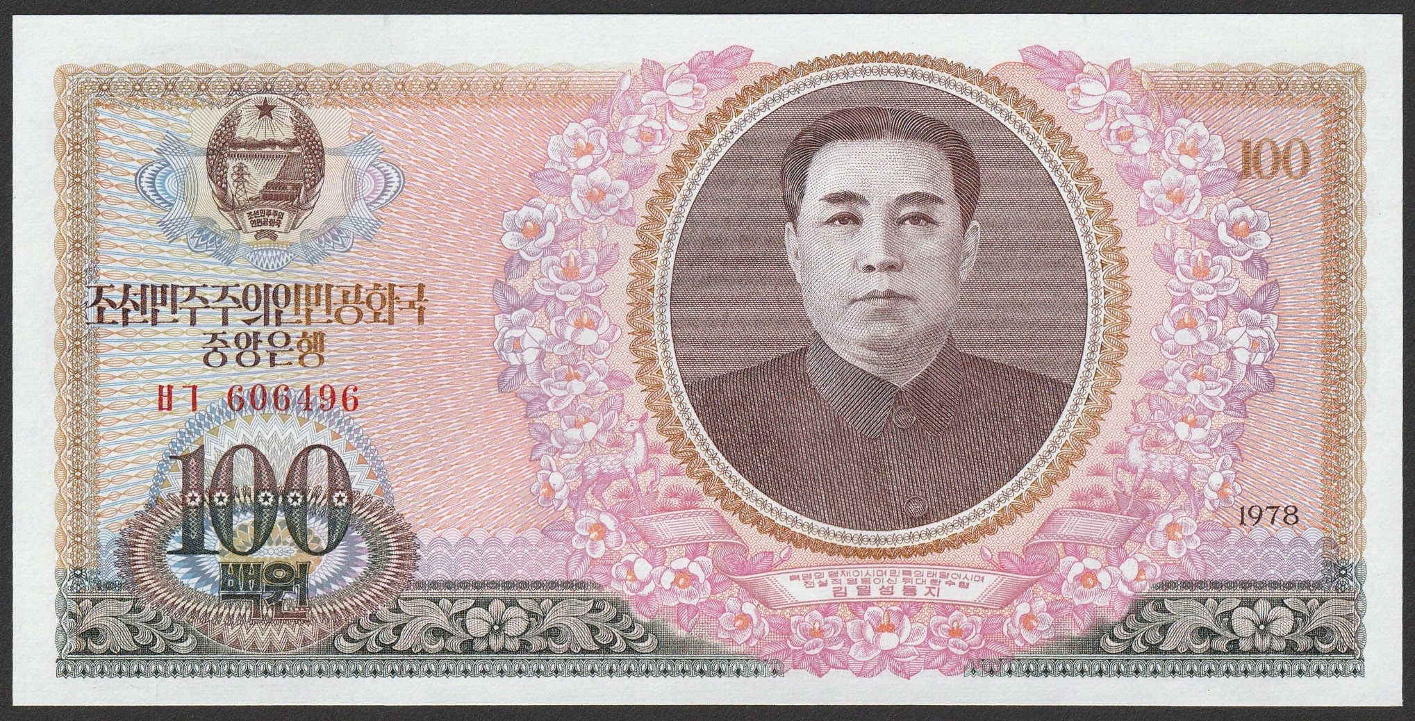 Korea 100 won 1978 - Kim Ir Sen - stan bankowy UNC
