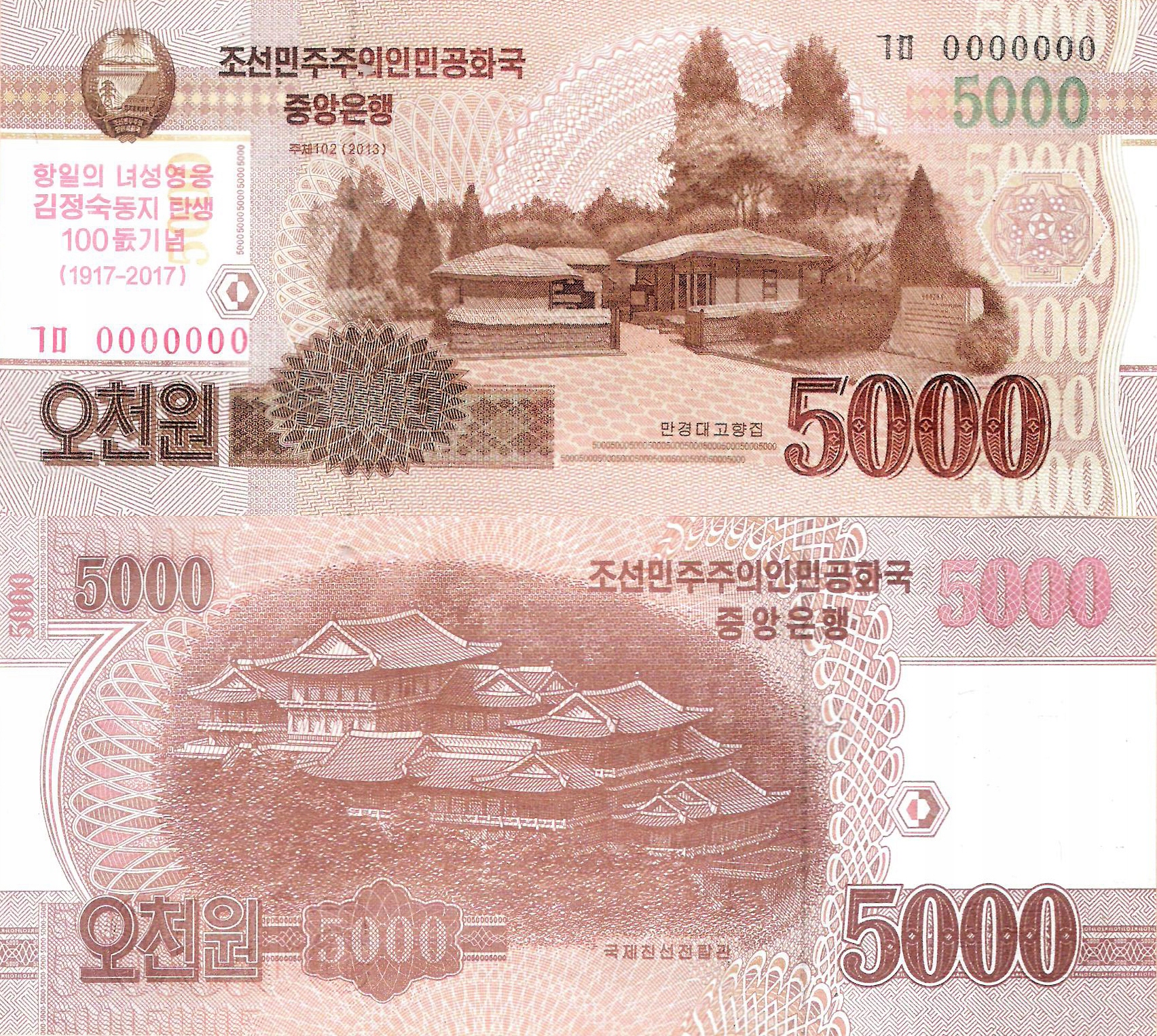 Korea Północna 2013(2017) 5000 won CS20 UNC Okolic
