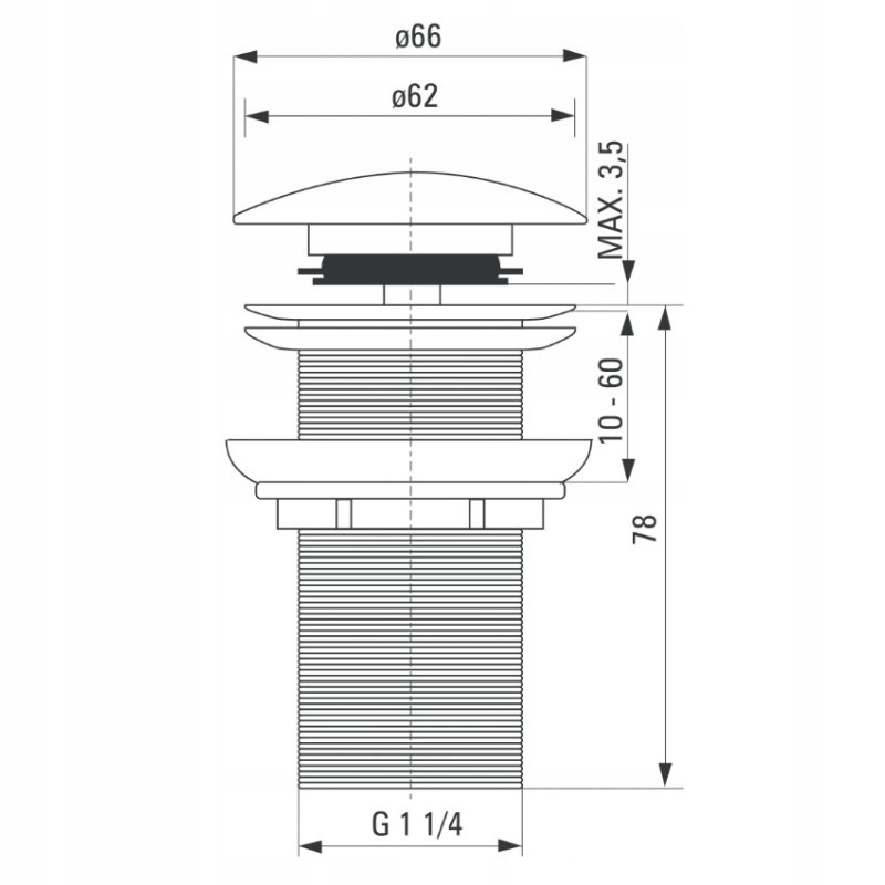 KOREK DO UMYWALKI CLICK CLACK CZARNY BEZ PRZELEWU MOSIEŻNY