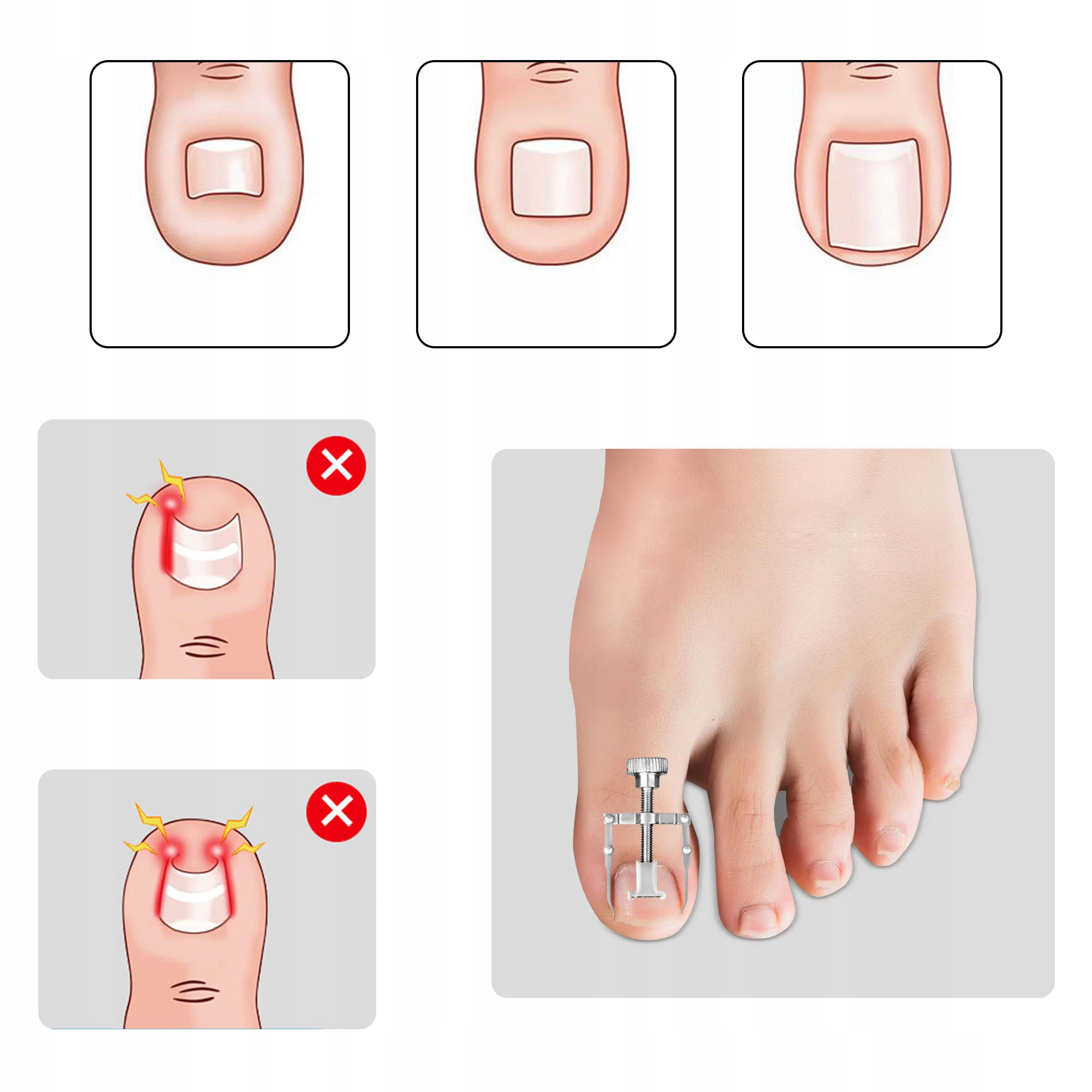 - Используя крючки с обеих сторон вросшего ногтя, наденьте зажим на ноготь и затяните.< /li>