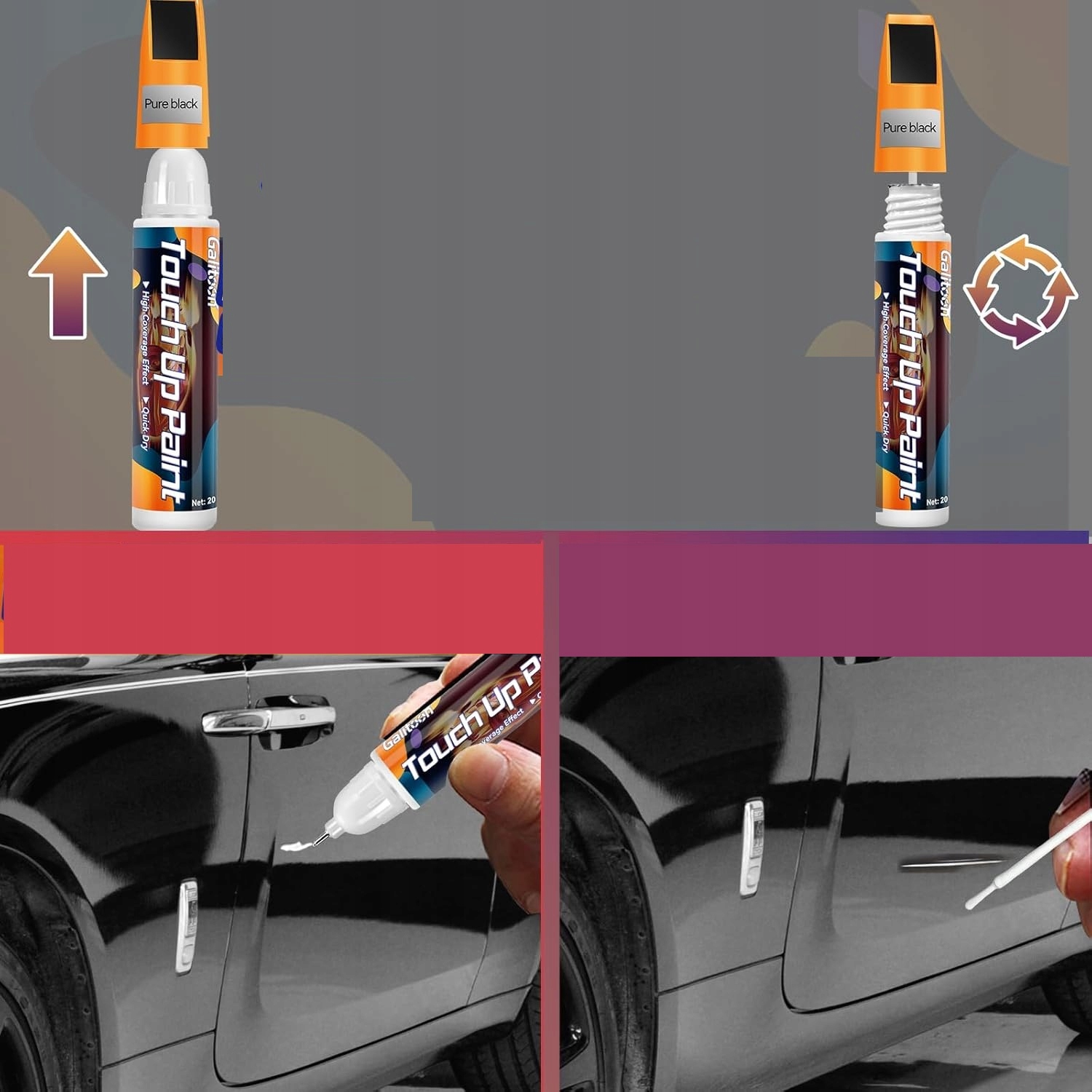 - Быстрый ремонт. Ручка для ремонта автомобиля может быстро устранить царапины на лакокрасочном покрытии автомобиля. Вы можете выбрать один из двух цветов. Краска на бутылке впитывается металлом и становится водонепроницаемой после высыхания. Предотвращает ржавчину вашего автомобиля.