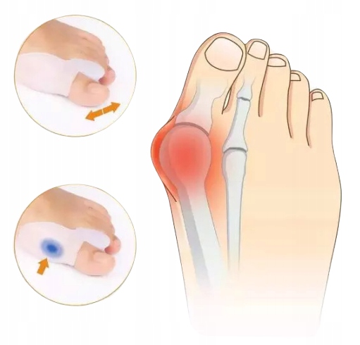 - Силиконовый клин между большим пальцем и остальными пальцами позволяет исправить искривление стопы. большой палец, выпрямляя его в сторону внешней стороны стопы.