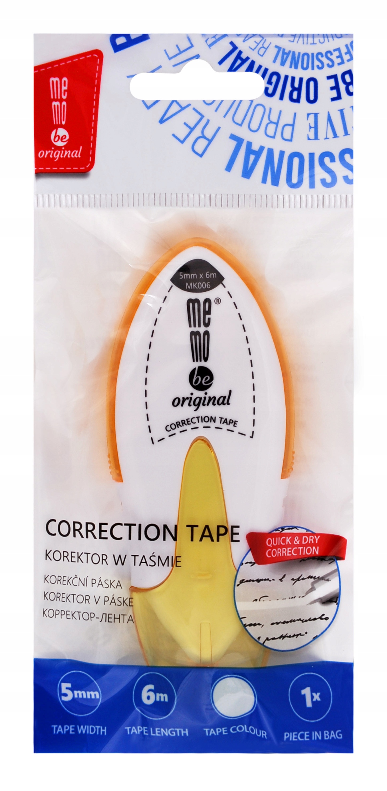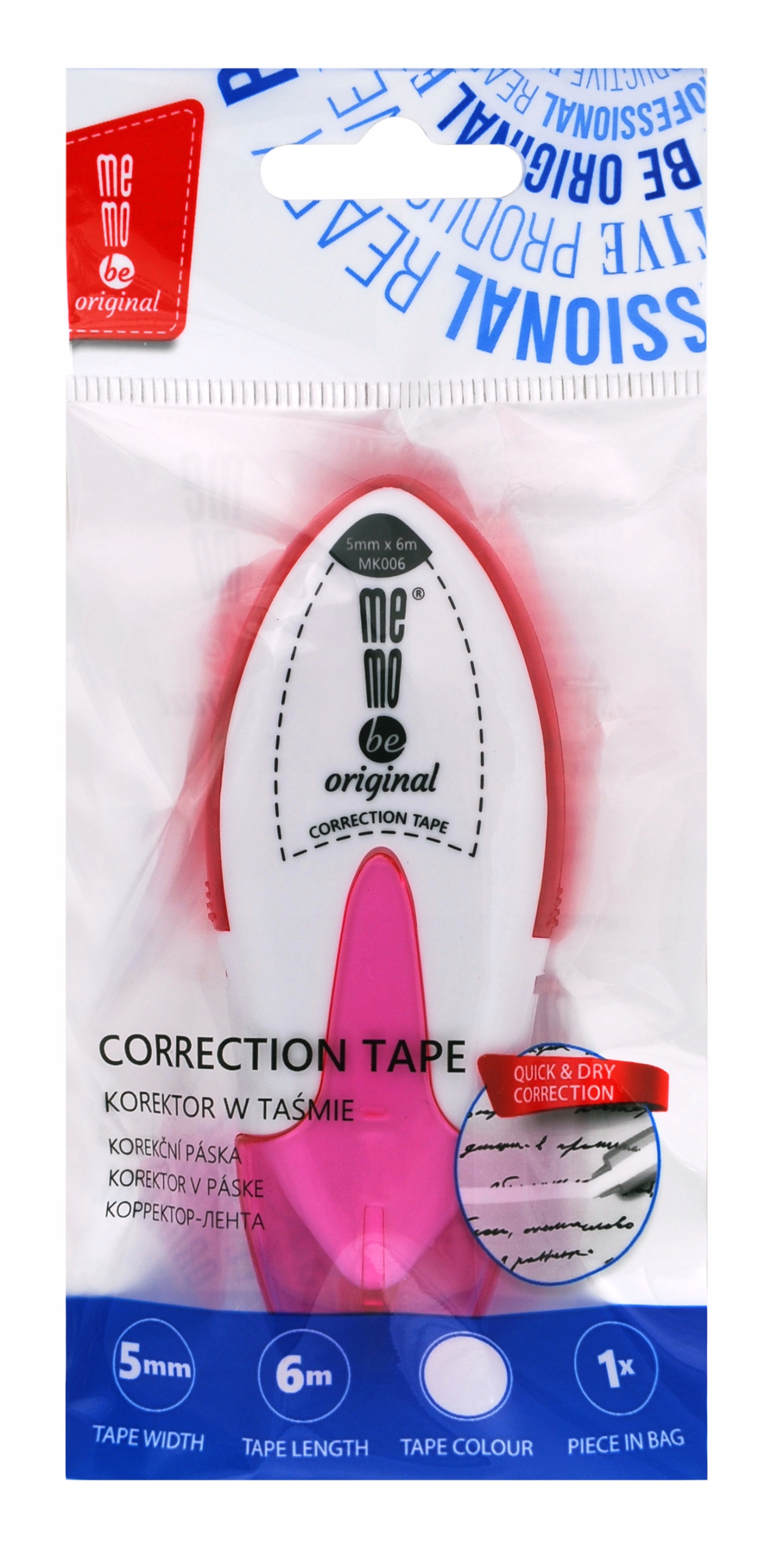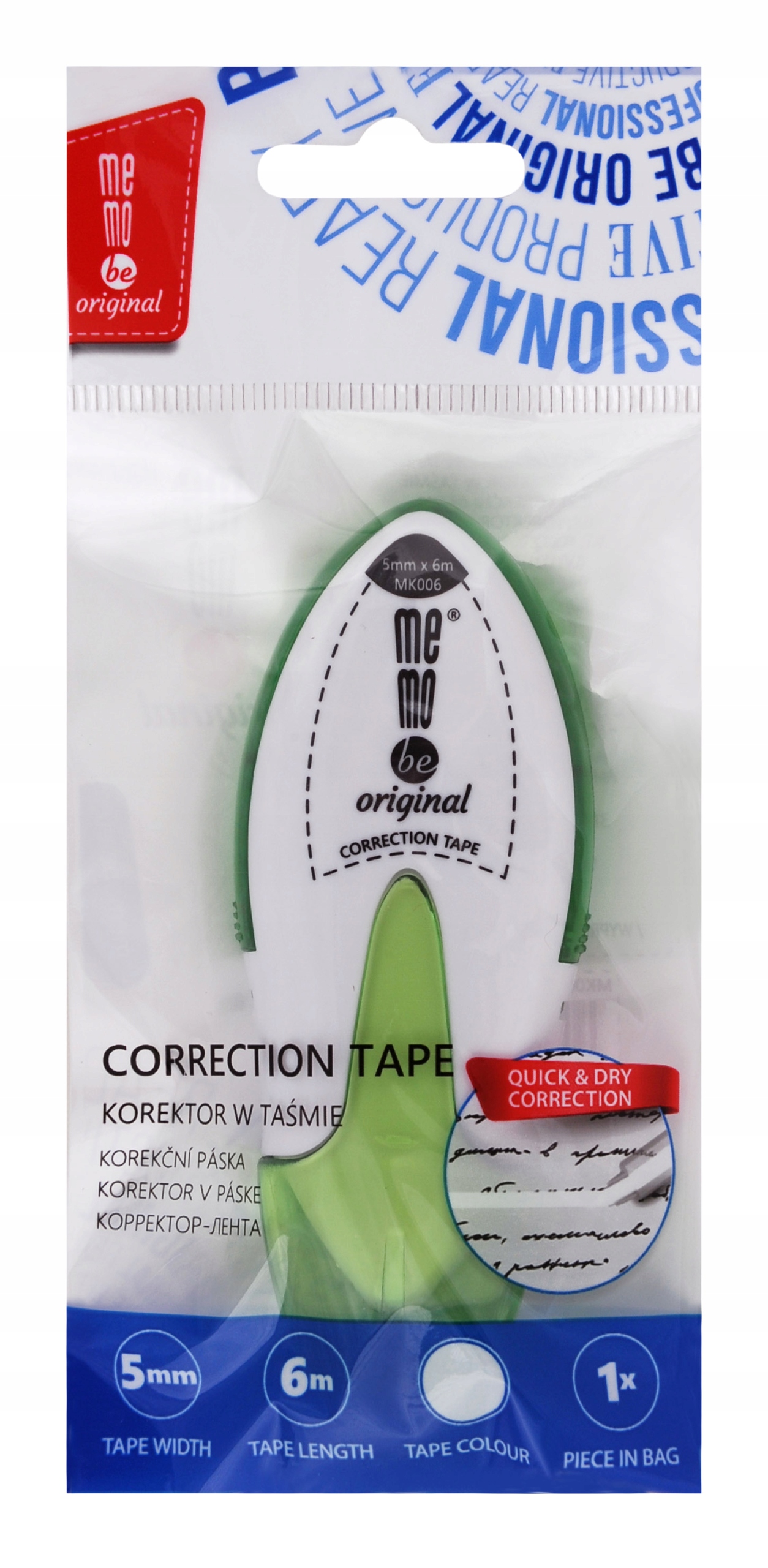 Корректирующая лента MemoBe в белом пластиковом корпусе эргономичной формы. п >
