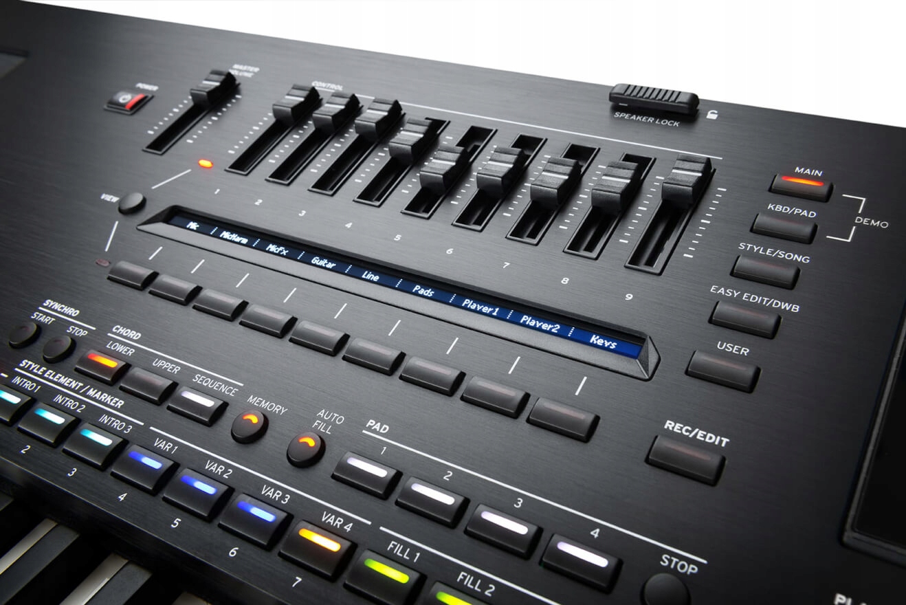 8 дорожек стилей, 4 набора клавишных и 4 пэда на стиль; программируемые звуки, эффекты и параметры стиля, режим гитары 2, параллельный и фиксированный NTT (таблица транспонирования нот),