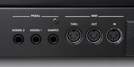 - Разъемы MIDI, USB, HDMI, аудиовход и выход, а также разъемы для ножного контроллера.