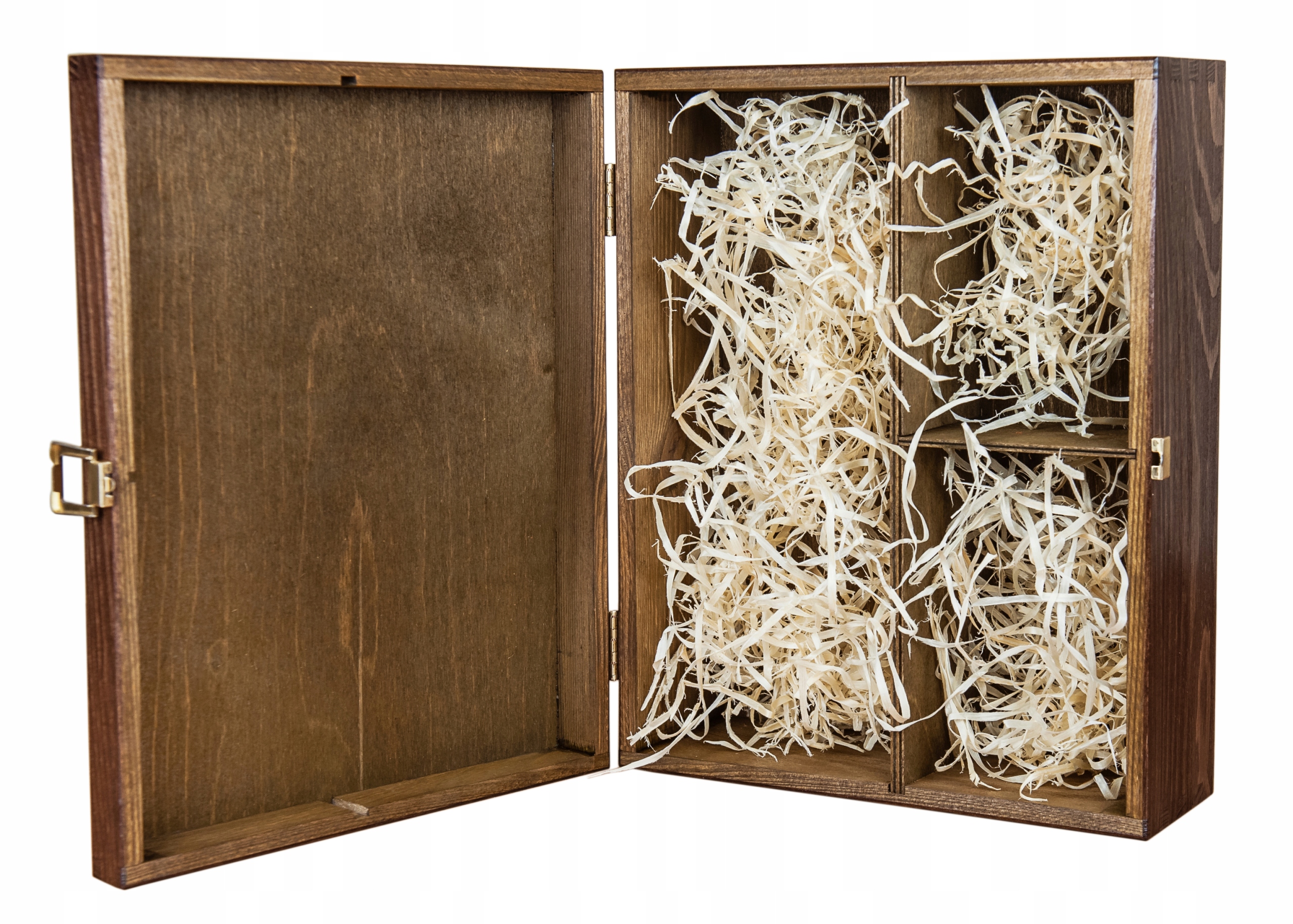 Прикрепите к каждой купленной коробке, купленной -полляемой в виде деревянной шерсти (деревянное сено). Заполняя коробку, алкоголь будет выглядеть красиво и будет защищен для хранения.