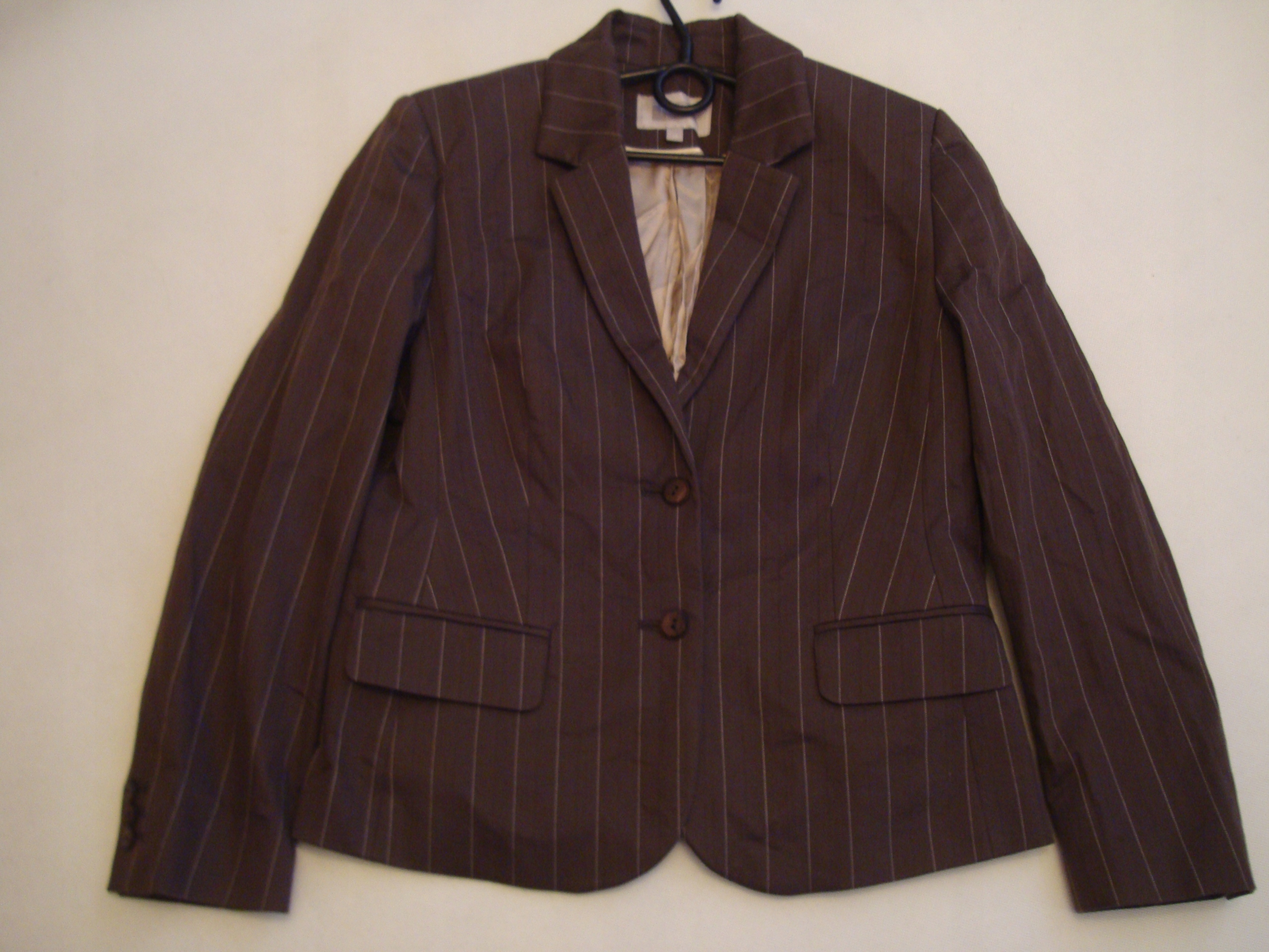 коричневая куртка с белыми полосами следующие 42, на бежевой подкладке. Гладкий или сшитый. Polyester