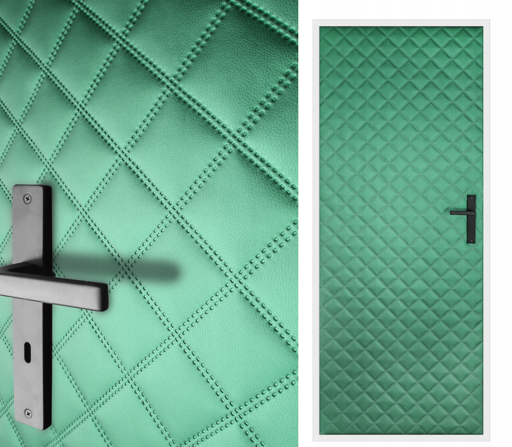 Обивка из простеганной ультразвуком экокожи (безрезьбовой) в ромбовидный узор 7х7см с глубоким 3D эффектом, на подкладке с толстым обивочным утеплителем 250гр/м2. Он оправдает ожидания даже самых требовательных клиентов. Новый дизайн!