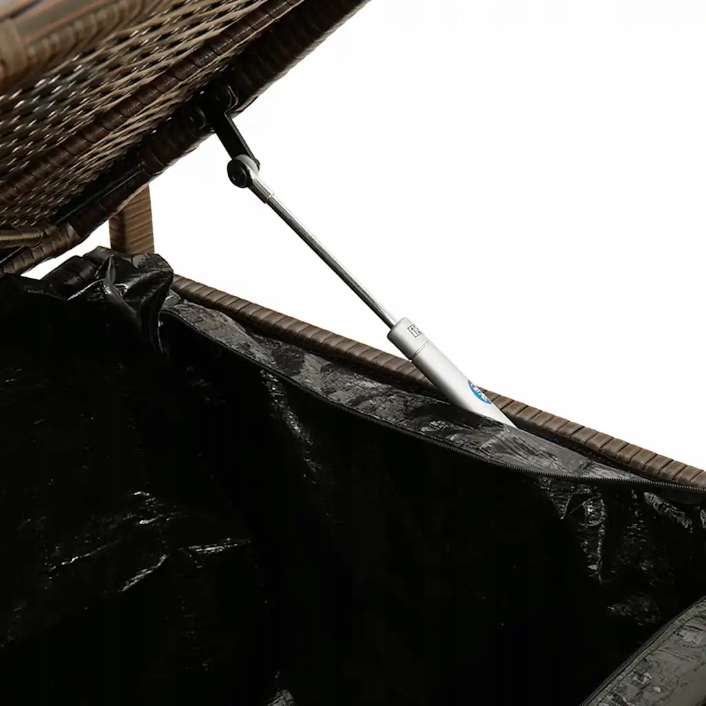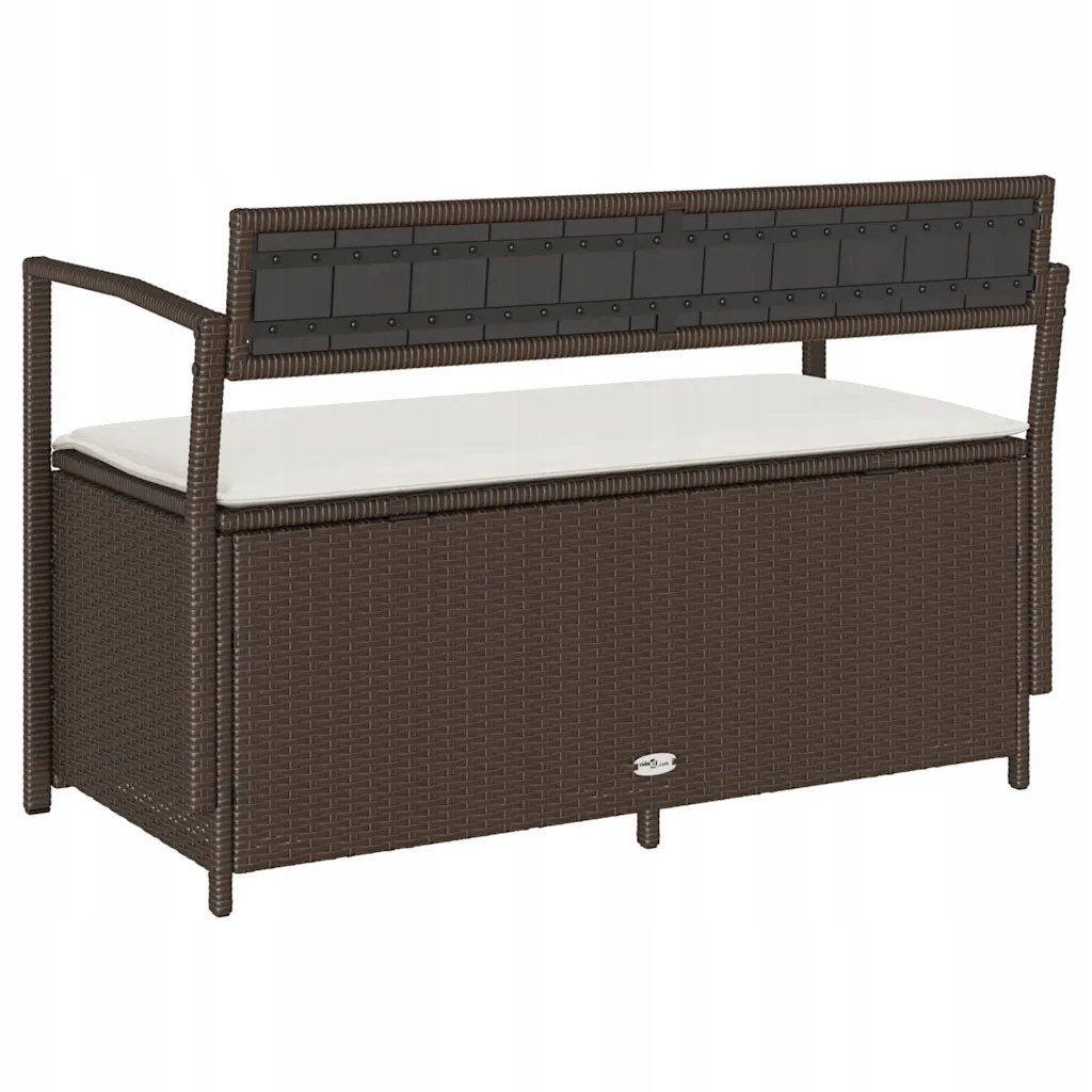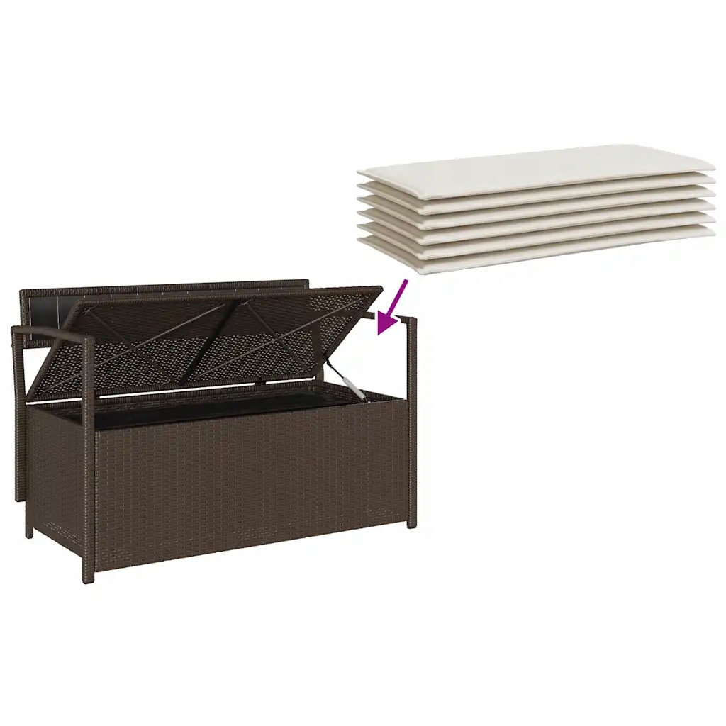Коричневая садовая скамейка с ящиком для хранения 111,5 x 54 x 74 см с кремовой подушкой