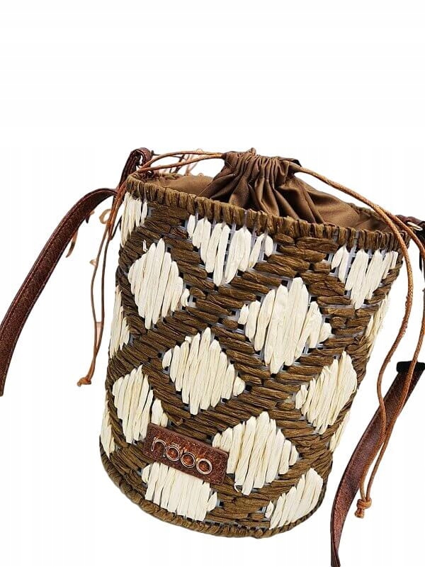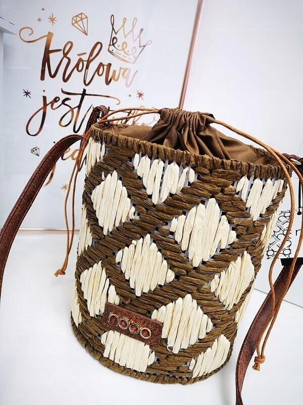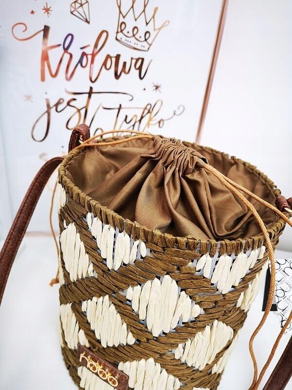 Оплетка сумки выполнена из бежевой и коричневой бумаги.