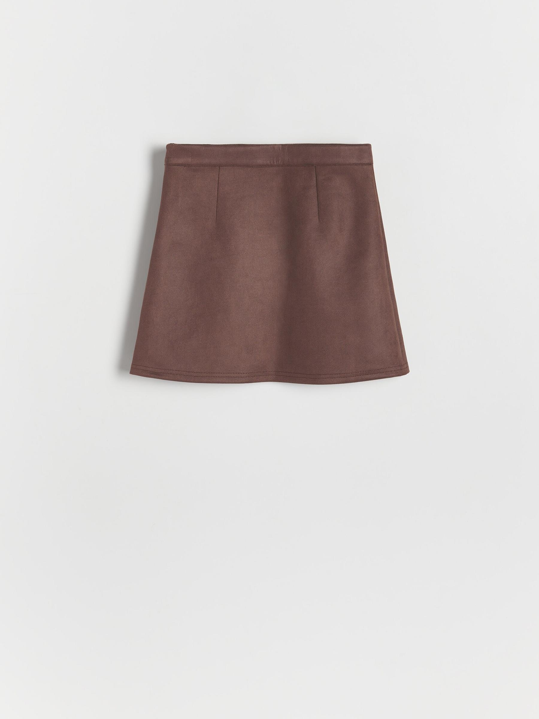 КОРИЧНЕВАЯ МИНИ-ЮБКА ТРАПЕЦИИ, ГЛАДКАЯ, РЕГУЛИРУЕМЫЙ ПОЯС, МОЛНИЯ ЗАПРЕЩЕНА 158
