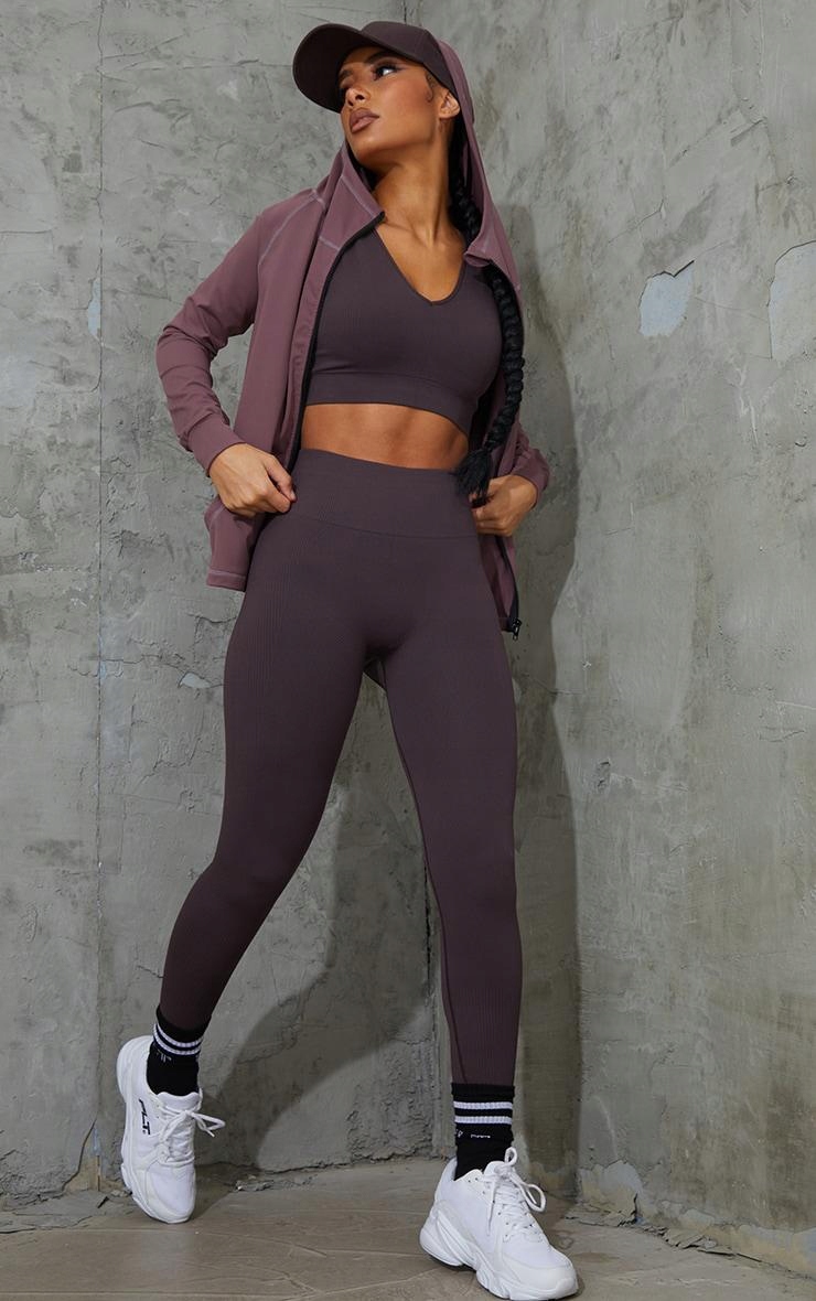 КОРИЧНЕВЫЕ ДЛИННЫЕ СПОРТИВНЫЕ ЛЕГИНСЫ PRETTYLITTLETHING M