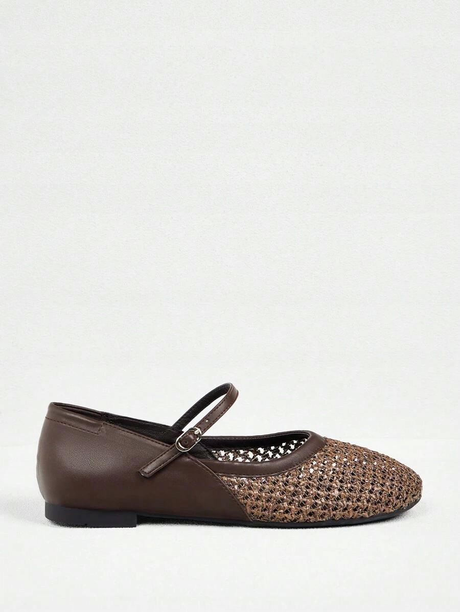 КОРИЧНЕВІ КЛАСИЧНІ ПЛОСКІ БАЛЕРИНКИ ПЛЕТЕНІ ПРЯЖКИ STYLELOOP 39