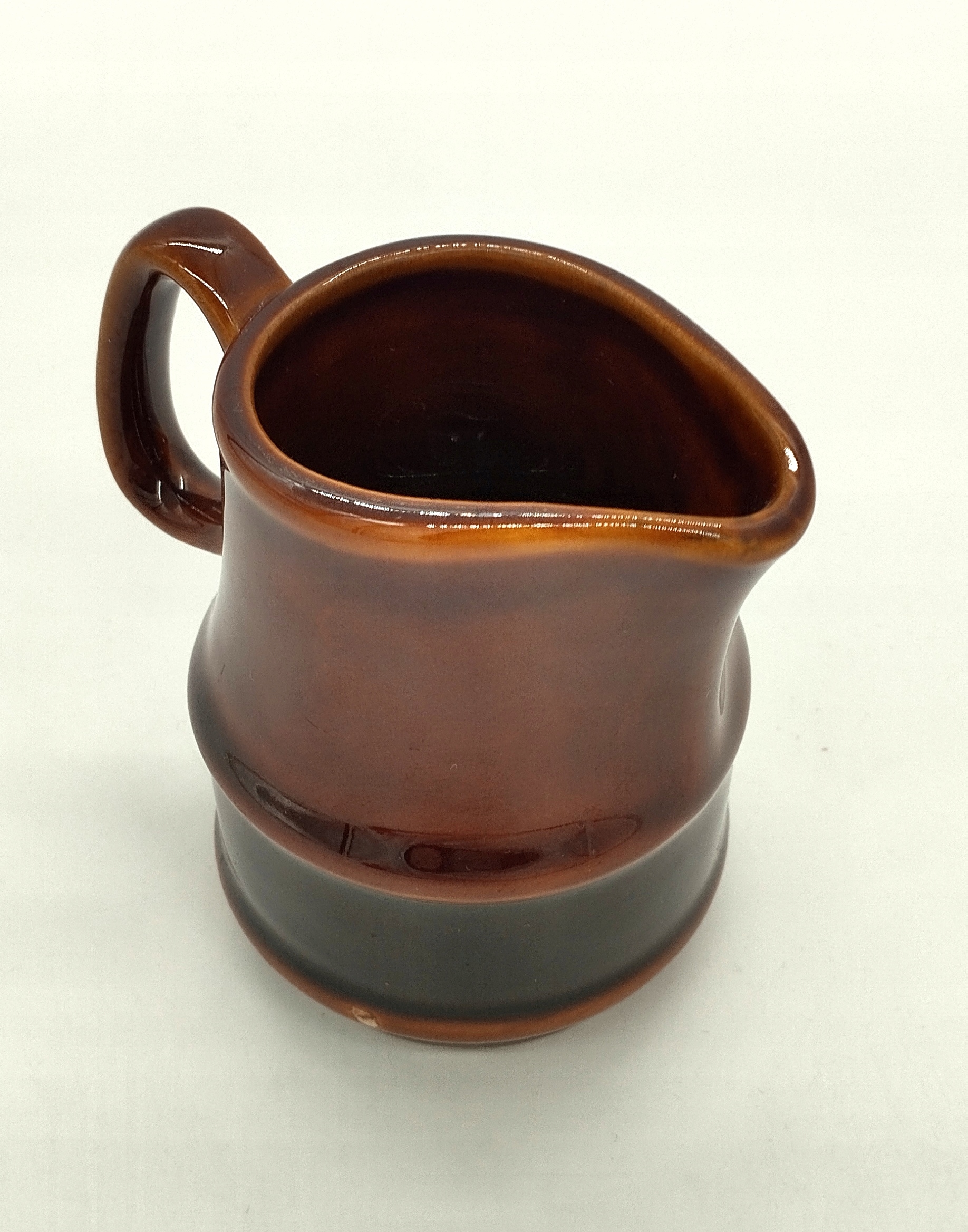 Коричневий порцеляновий молочник з ремінцем у Прушкуві; висота 10 см; 1970-ті роки