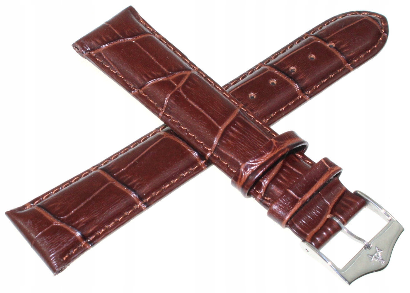 Кожаный зауженный, прошитый, блестящий ремешок для часов швейцарской компании ATLANTIC. Строение кожи аллигатора. Ширина 20 мм.Отстрочки в цвет пояса. Подходит ко всем часам со стандартным креплением шириной 20 мм. Телескопы в комплекте.
