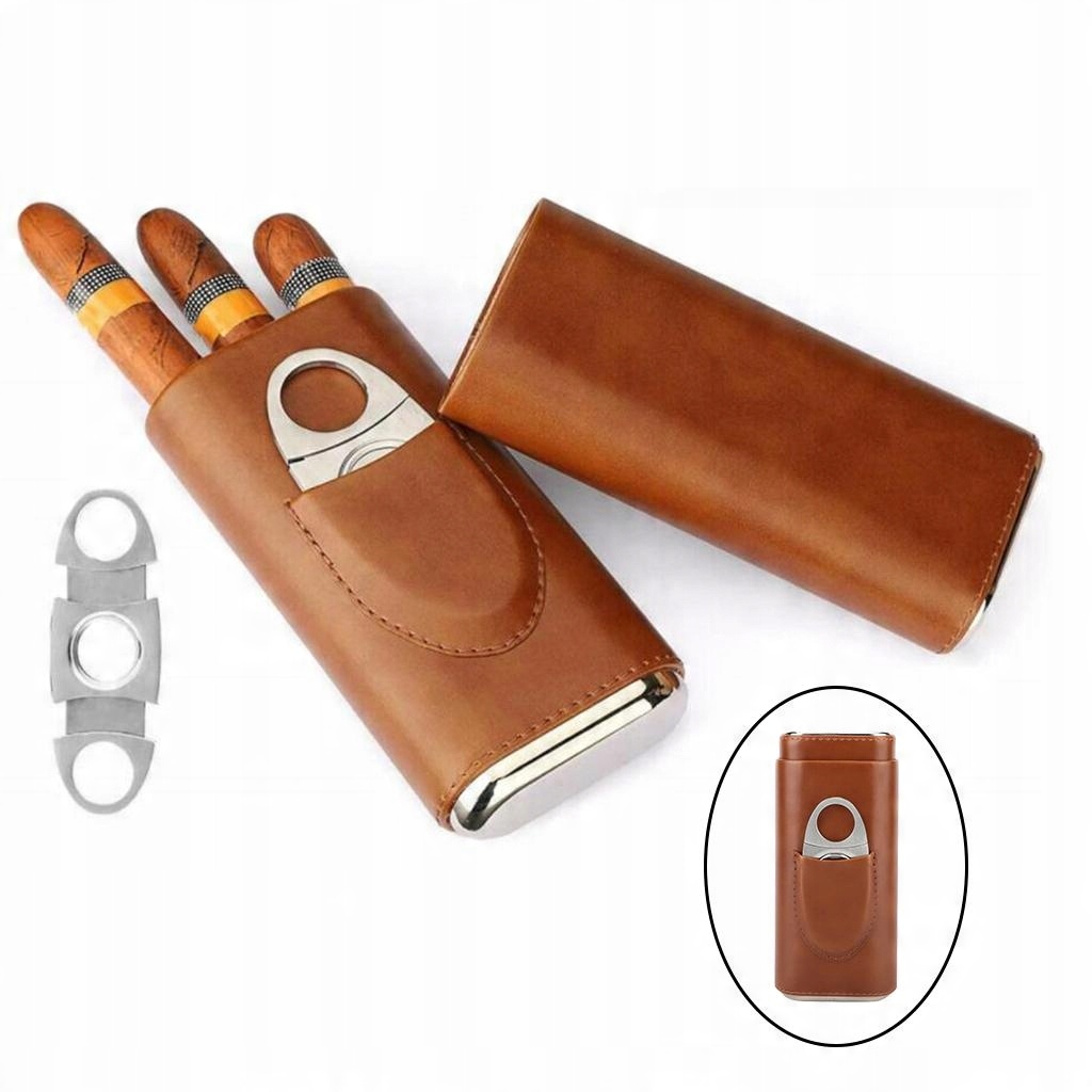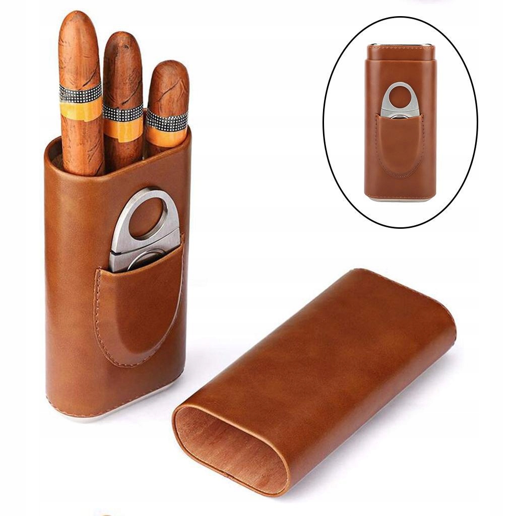 Кожаный чехол для сигар для путешествий на 3 резака для трубок, коричневый