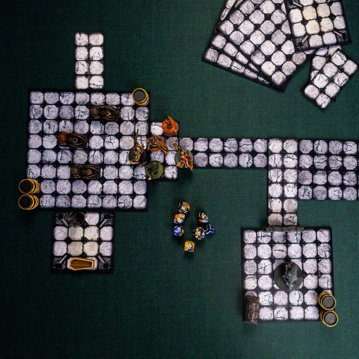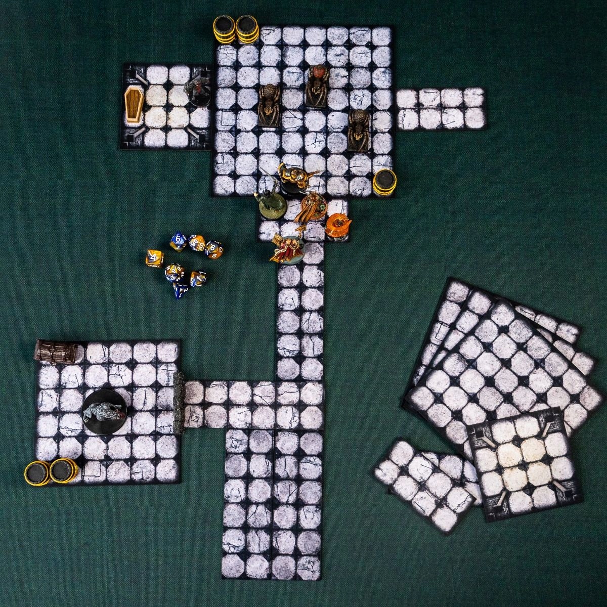 Модульный набор подземелий в ролевой игре, состоящий из 16 резиновых сегментов с сеткой из квадратов, позволяет создавать динамичные, атмосферные подземелья в каждой сессии. Любая конфигурация, прочный материал и совместимость с любой фэнтезийной игрой!