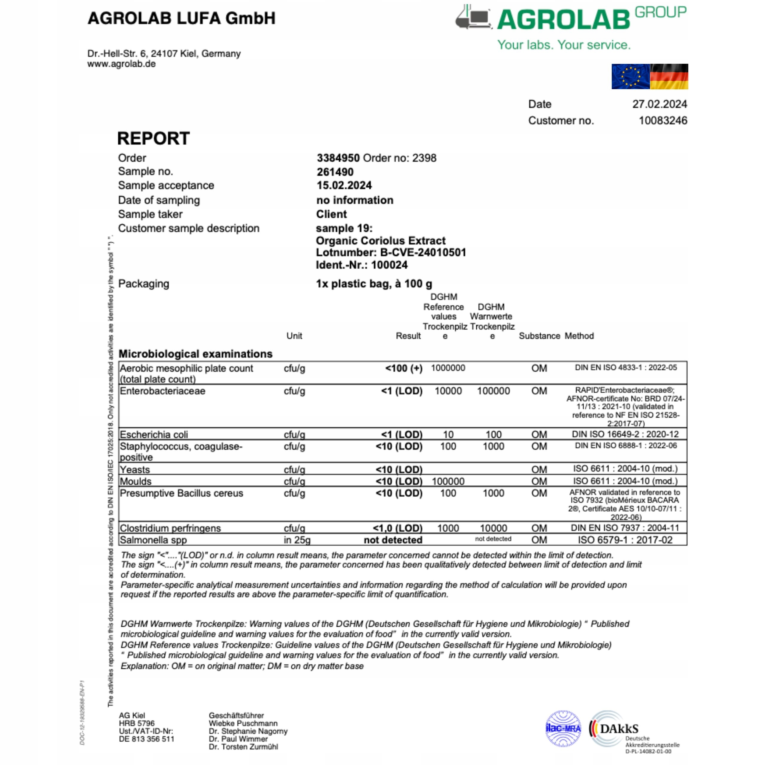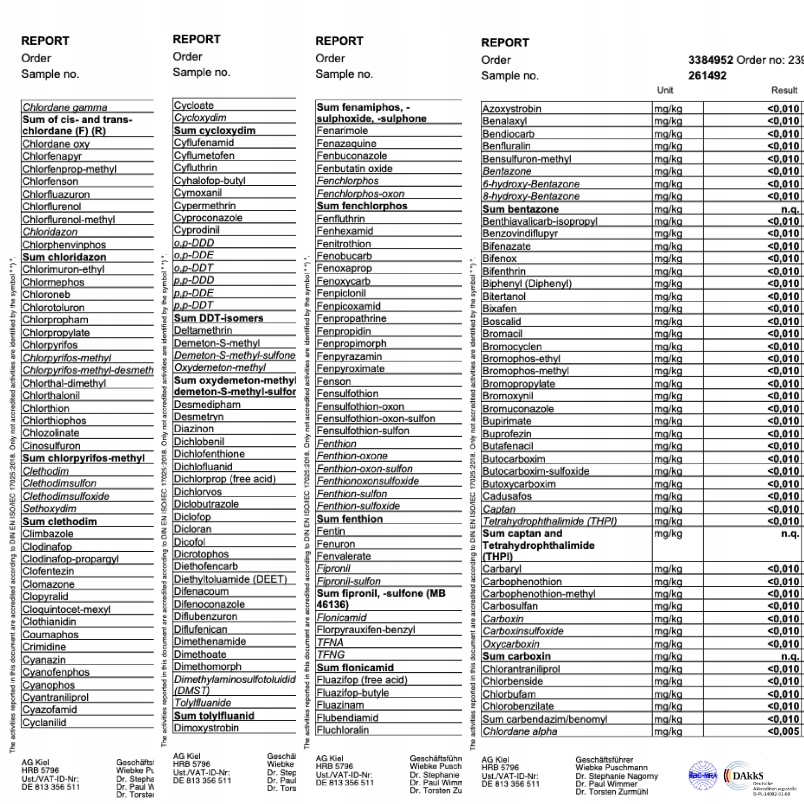 Были проведены в двух аккредитованных немецких лабораториях agrolab