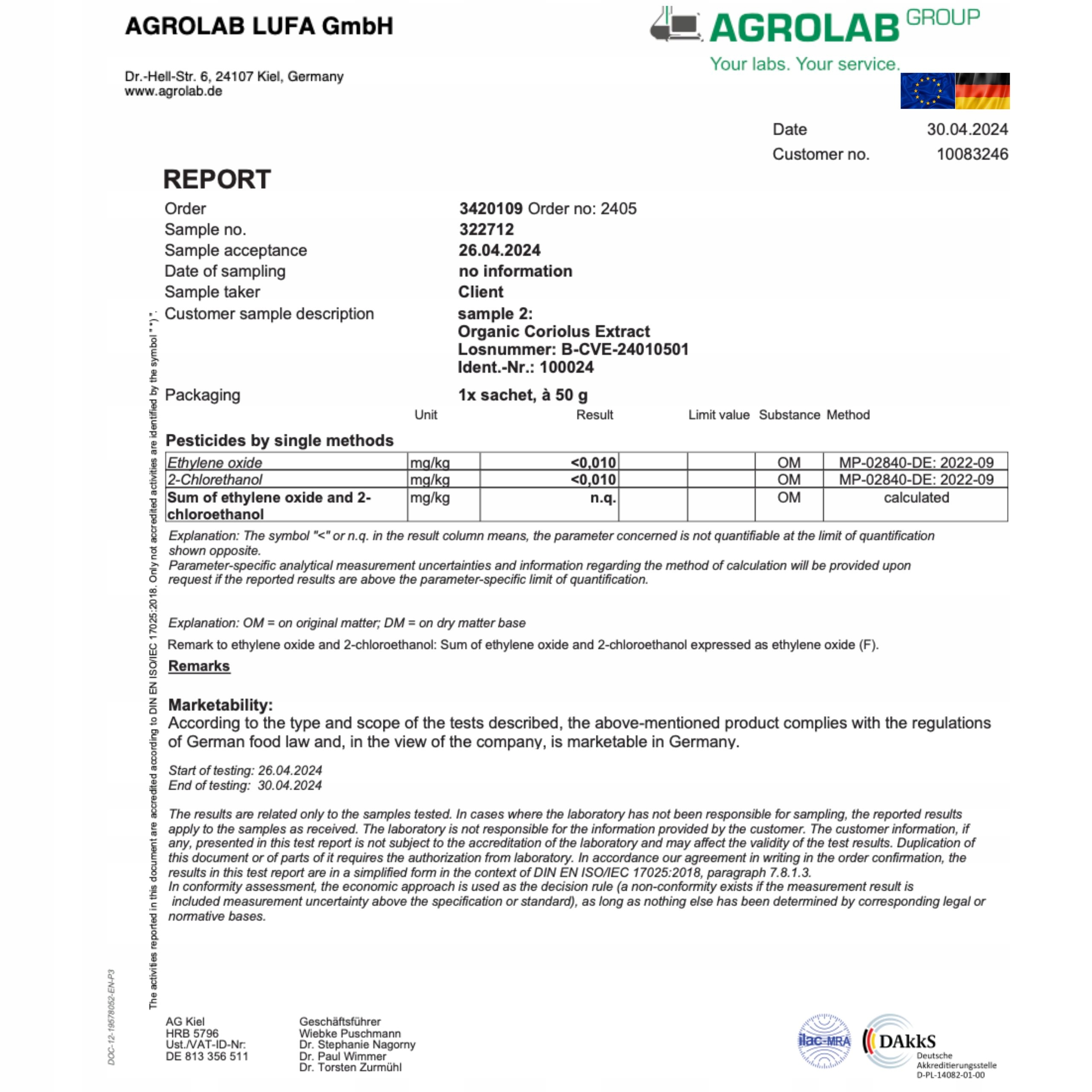✅ Более 250 лабораторных испытаний , проведенных в двух аккредитованных немецких лабораториях: agrolab и фармацевтические беспилотники . облучение .