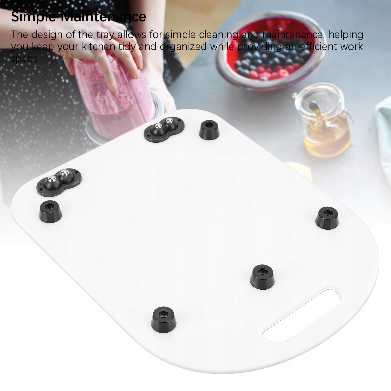 3. Легкое движение: лоток предназначен для безопасного транспортировки устройства, сводя к минимуму риск повреждения и защита столешницы от царапин или знаков с использованием функции амортизации.